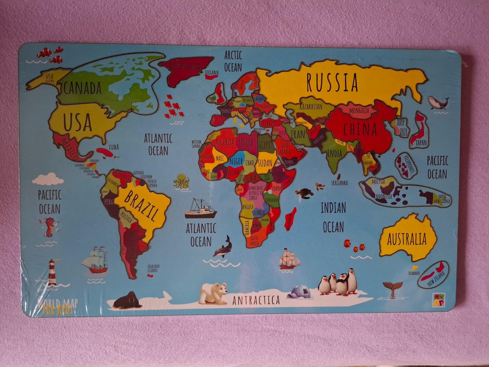 Predám novú detskú mapu sveta. Ide o vkladačku, rozmery 24,5x40cm.