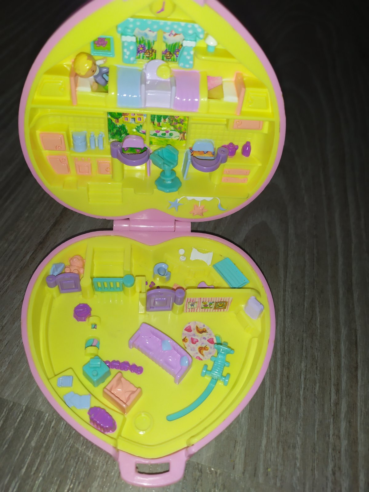 Polly pocket polly in the Nursery z roku 1992, original od znacky bluebird . Polly pocket su miniaturne svety s mnozstvom detailov, ktore sa daju lahko zbalit aj na cesty. Vintage hracky. Rarita uz len tazko zohnatelna. Pripadne vymenim za ine polly pocket alebo figurky co nam chybaju v zbierke. Ruzove srdiecko s detskymi jaslickami skolkou. K setu oridavam original bluebird figurku dietatko babatko z ineho setu
