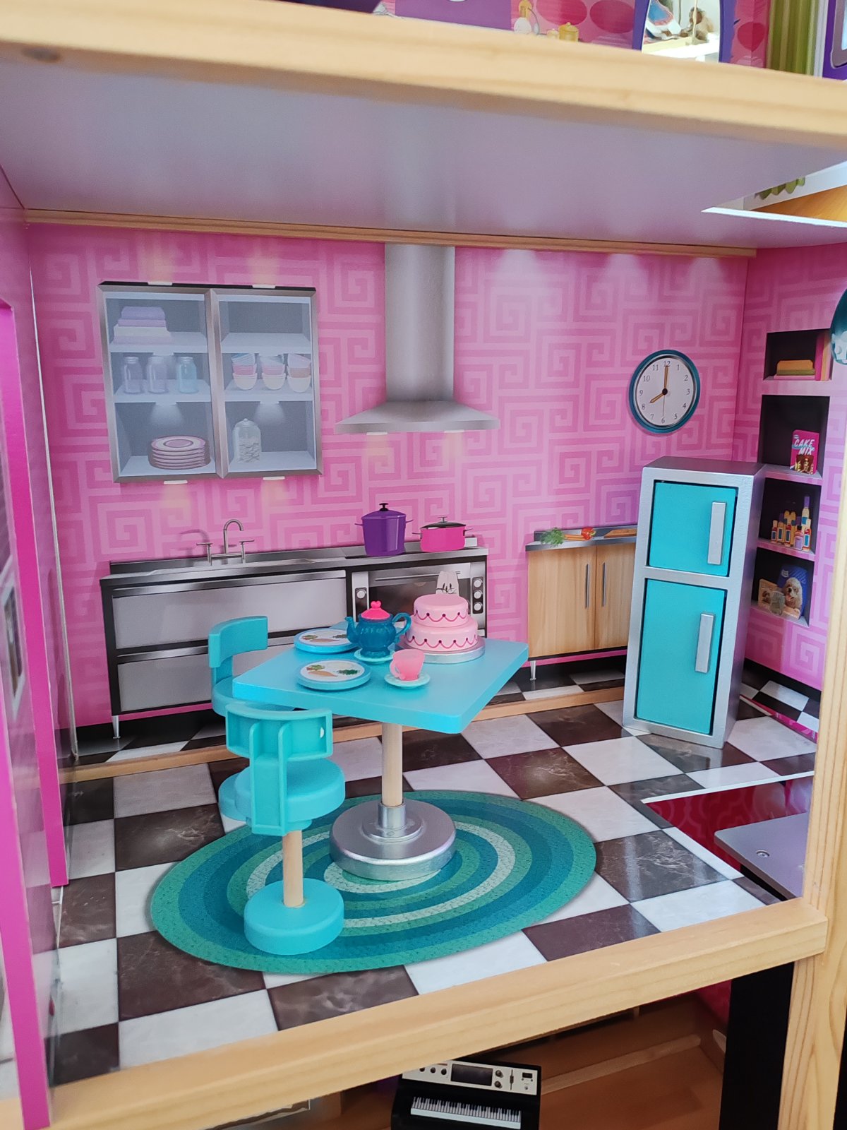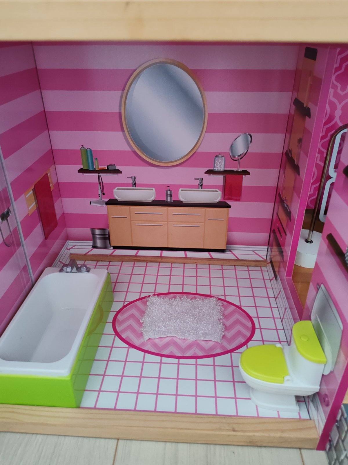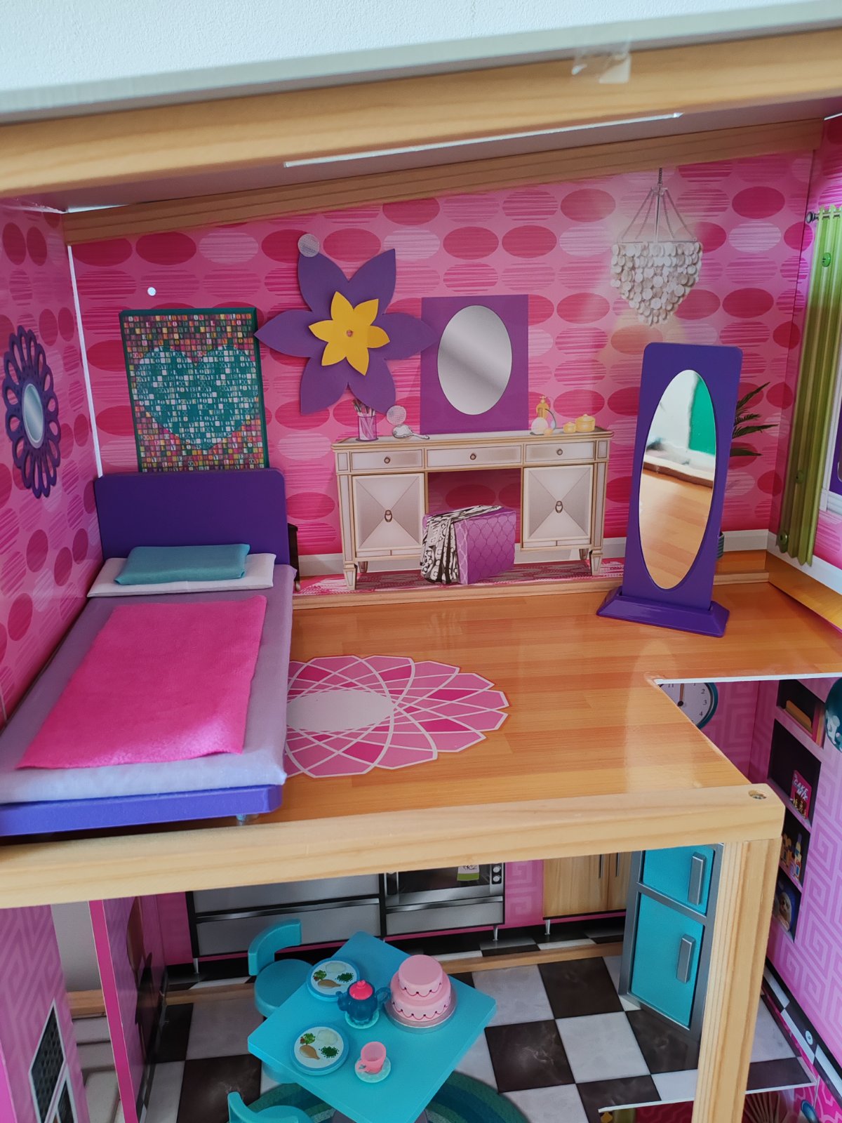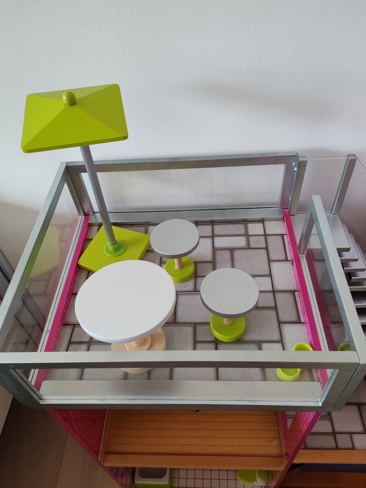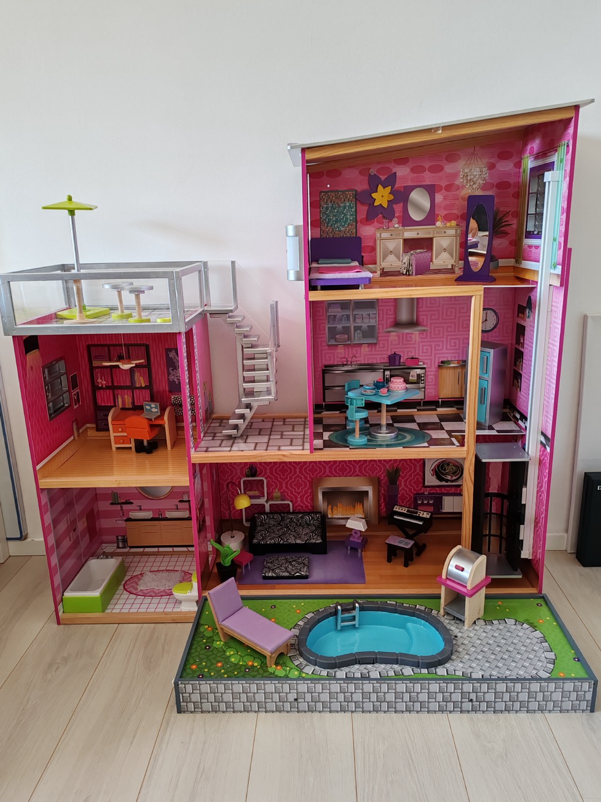 Moderný trojpodlažný členitý mestský domček v atraktívnych farbách. Je rozvrhnutý do dvoch veží a disponuje dvoma vonkajšími priestormi, terasou a dvorom s bazénom, a poskytuje tak priestor na hry aj malej skupine detí. Je vybavený interaktívnymi doplnkami, nielen posuvným výťahom, ale aj doplnkami so zvukovými a svetelnými efektmi poháňanými batériovo (batérie nie sú súčasťou balenia), klavírom, toaletou a lampou. Domček ďalej obsahuje veľké množstvo detailne spracovaného nábytkového vybavenia, ktoré umožní deťom stále objavovať nové možnosti rozostavenia a hier. Rozmery domčeka a vybavenia sú uspôsobené pre bábiky bežnej veľkosti. Výrobok vyžaduje montáž, dodávané s detailným grafickým návodom na zostavenie.