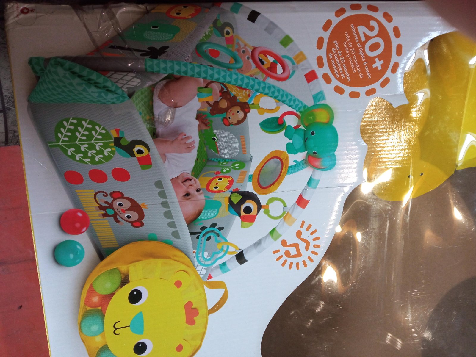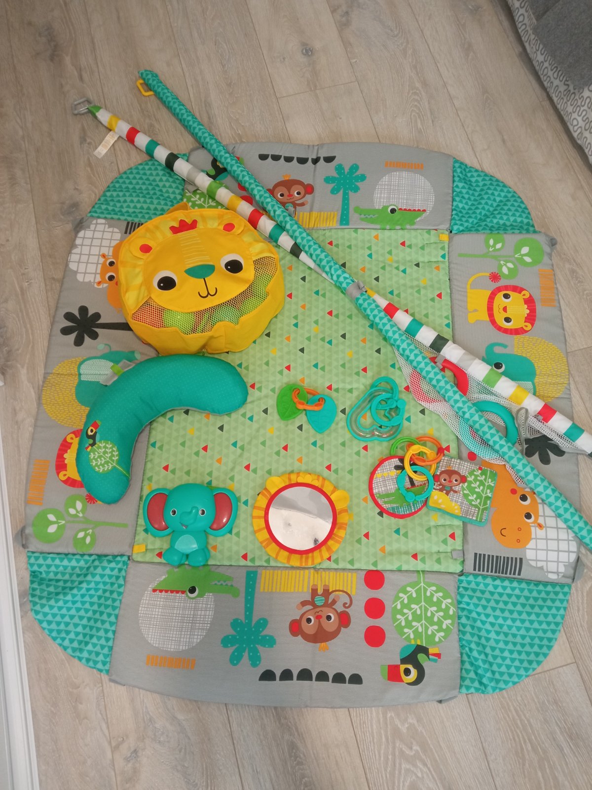 Výborný stav. Kvalitné spracovanie... sloník plastový ktorý hral nefunguje. Ináč všetko funguje ako má. Podložka sa dá prať. Aj osobný odber Mesto Bardejov.