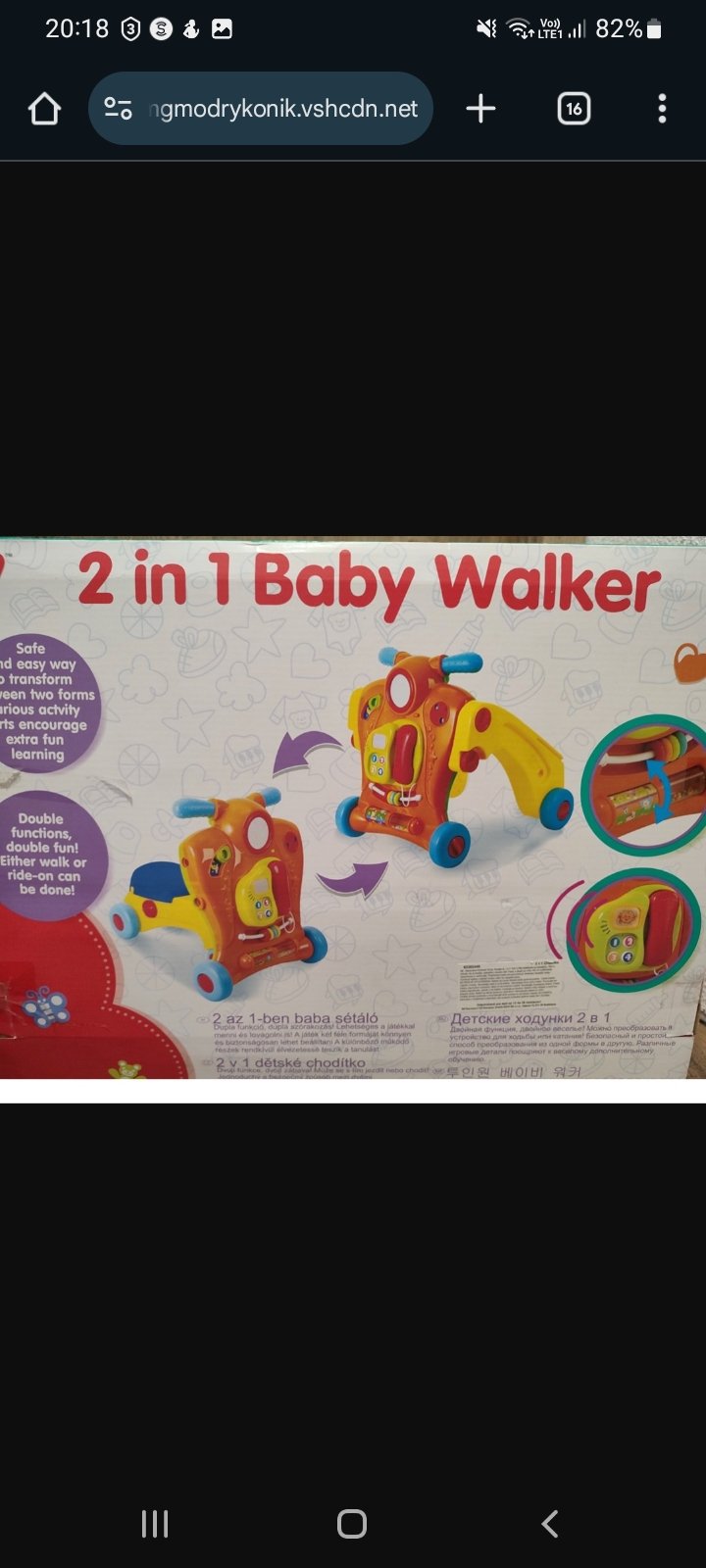 2 v 1 odrazadlo, ktore sa da jednoducho preskladat na choditko. Tlacidla funguju a vydavaju zvuky.