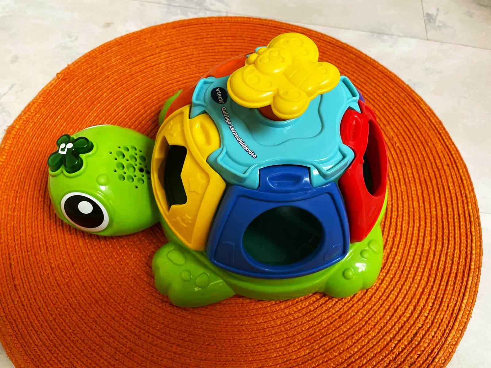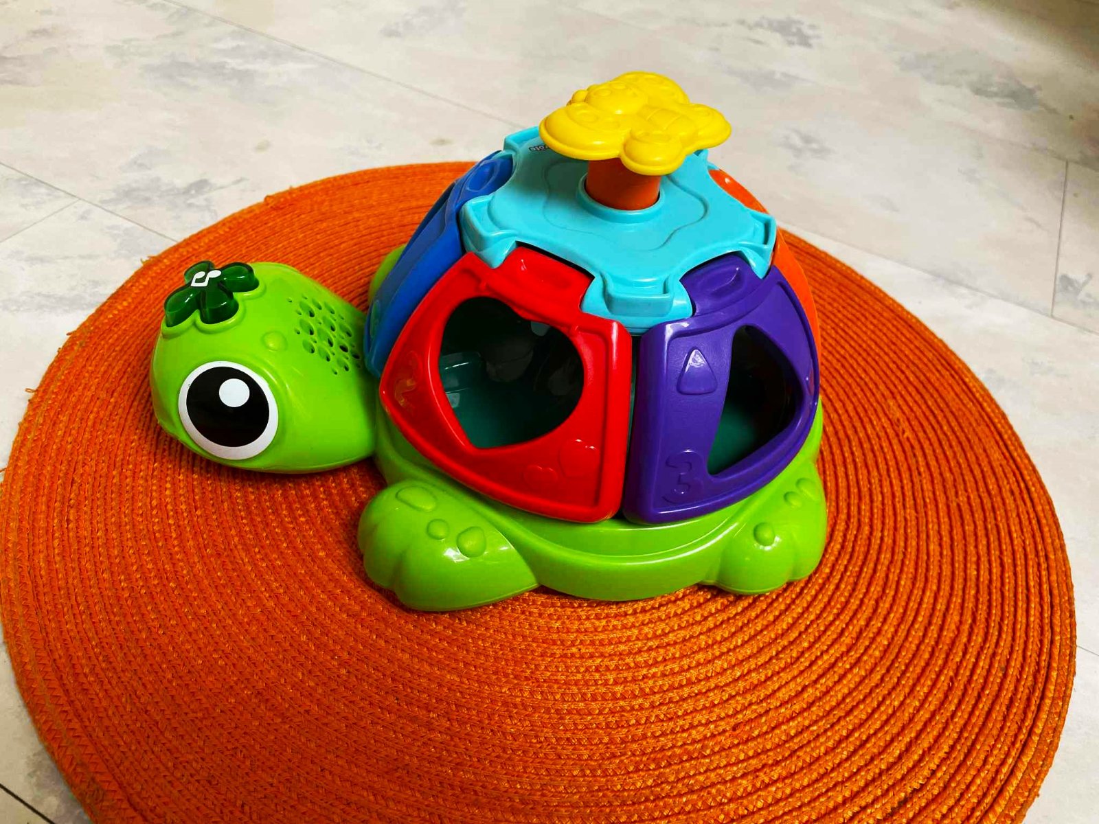 výborná hračka typu Montessori, ktoré podporujú zmyslový i emočný rozvoj, dajú deťom priestor hľadať, pozitívne sa učiť a tvorivo sa rozvíjať, pri spoločnej hre so zábavnou korytnačkou dostanú deti zábavné výzvy, prostredníctvom ktorých si precvičia jemnú motoriku. Stlačením tlačidla v tvare motýľa na hlave si vypočujú vtipné pesničky,keď stlačíte tlačidlo, škrupina sa otočí a dvihne, so zvukom a pesničkami. Na baterky.Dlžka = 23 cm, šírka = 20 cm,výška = 14 cm