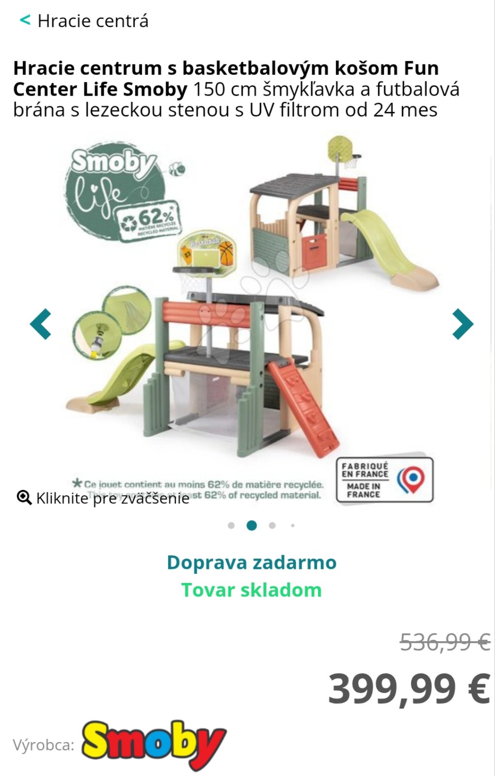 Hračky a hry / Šmykľavky, hojdačky, domčeky / Plastové