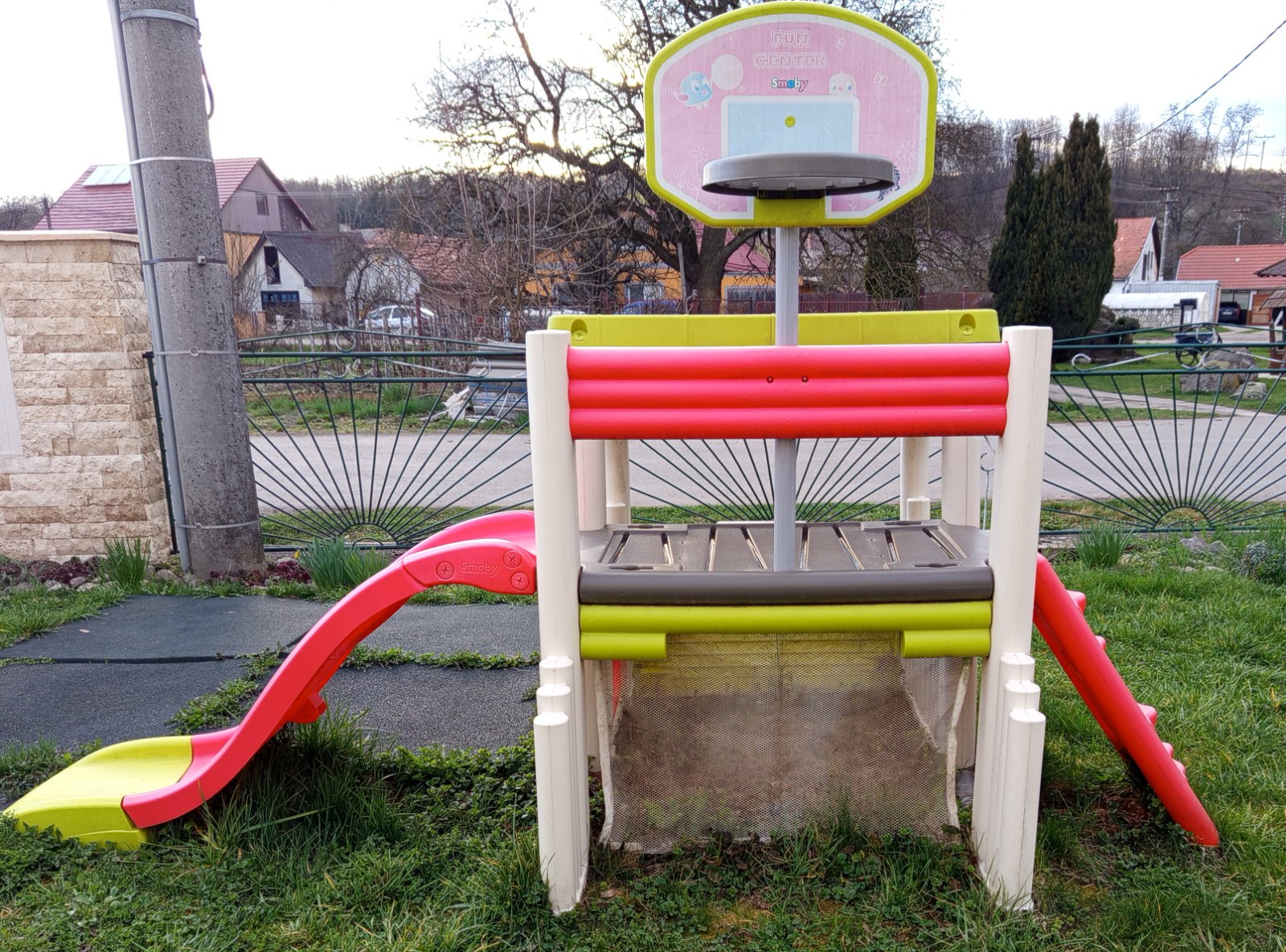 Hracie centrum používané 5 rokov. Chýba sieťka na basketbalovom koši a brankárska sieť je mierne natrhnutá.Osobný odber.
