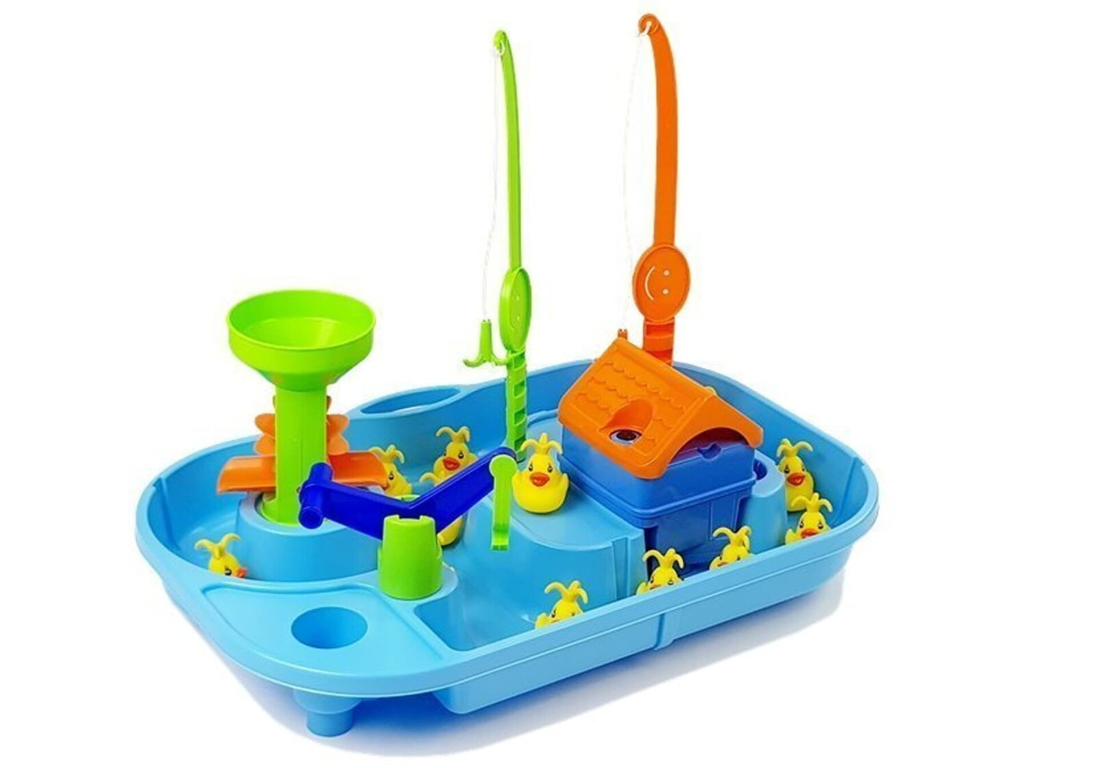 Stavebnica je žľab, ktorý treba naplniť vodou. Vo vodných chodbách plávajú káčatká. Každý hráč (maximálny dva) má prút s háčikom, na ktorom musia chytiť nepoddajné mláďatá. Kto ich dokáže vytiahnuť z vody, vyhráva!