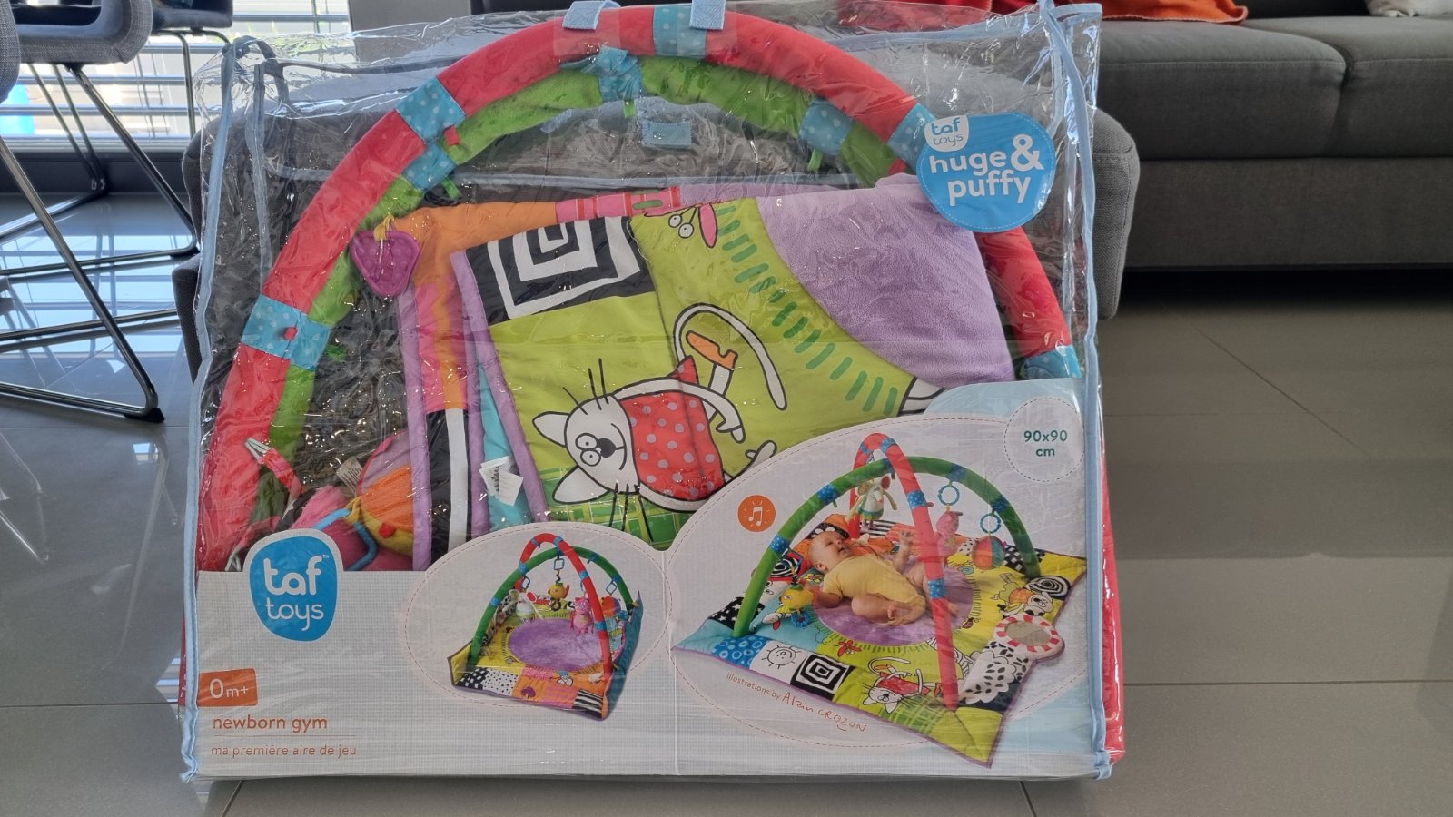 Používaná, no vo výbornom stave. Všetko funguje. Hracky hrkaju, natahuju sa a do jednej sa dajú dat baterky a vyhráva . Rozmer 90x90 cm.
