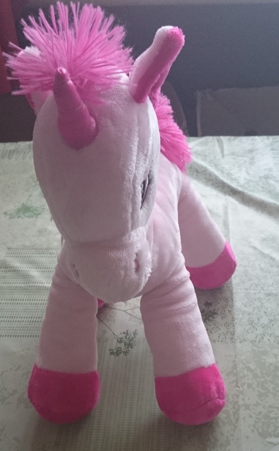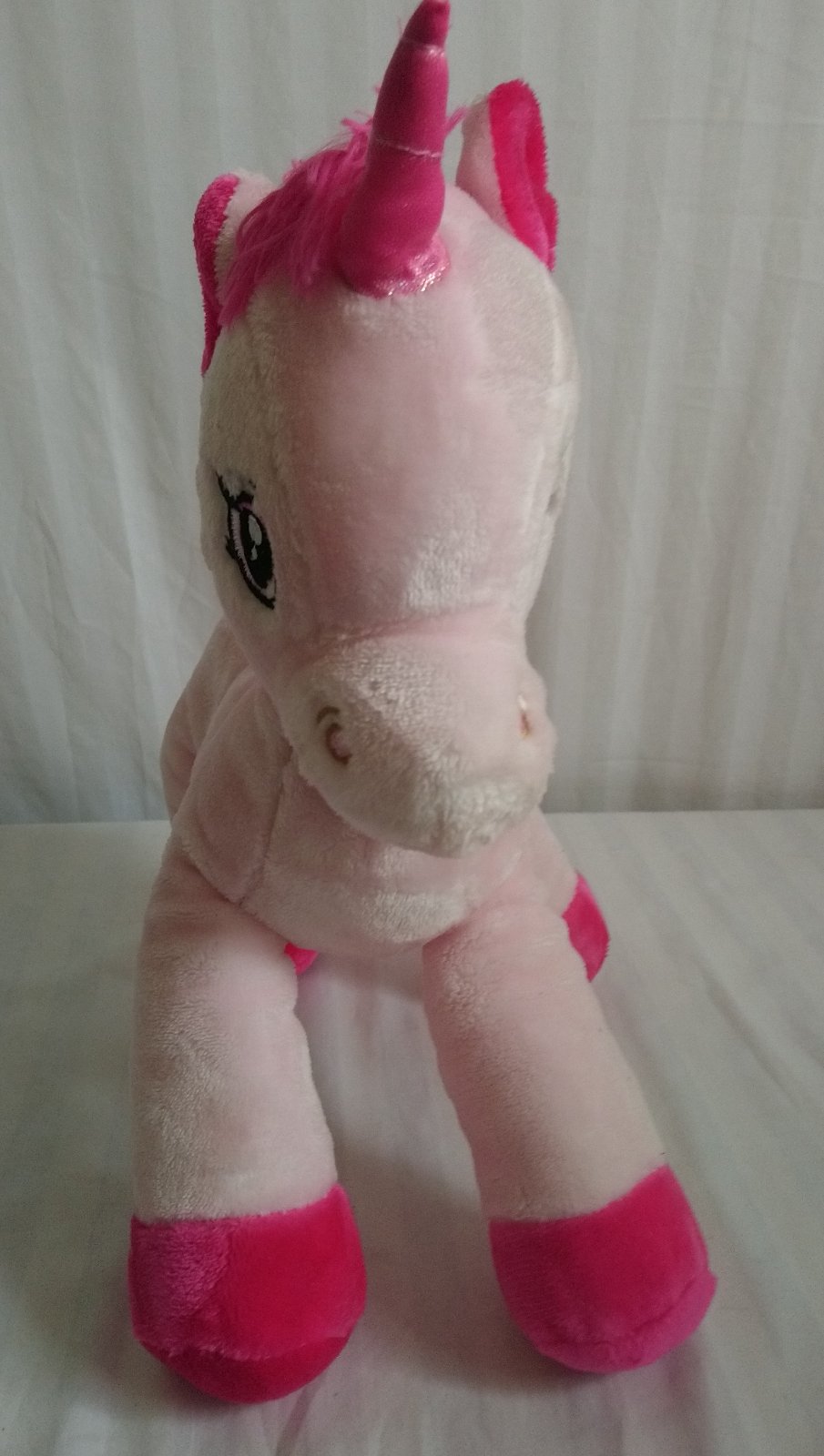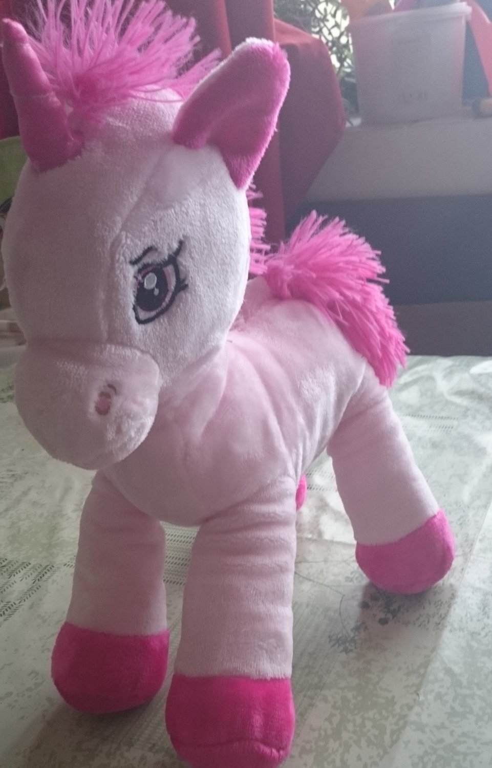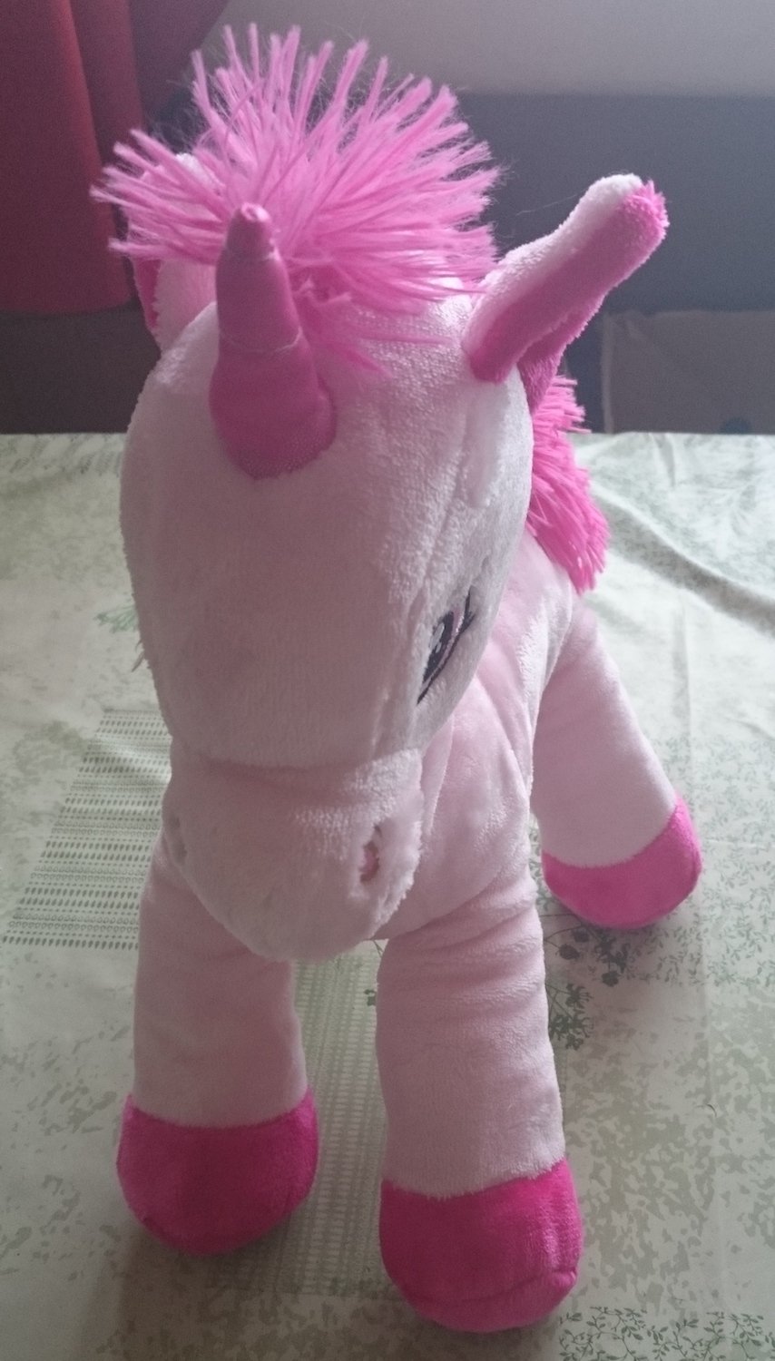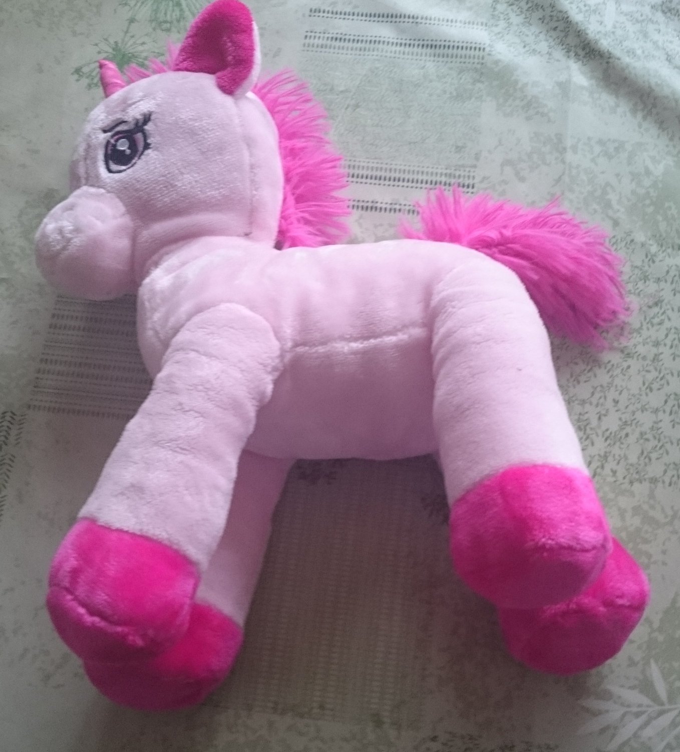 Plyšový ružový jednorožec, vyrobený z kvalitného jemného a mäkkého plyšového materiálu,