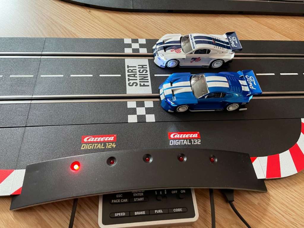 Ponúkam na predaj digitálnu autodráhu Carrera D 132. Ide o špeciálnu limitovanú edíciu s autami Ford Mustang. . Bola používaná 3x iba na Vianoce, preto je ako nová. K dispozícii máme aj ďalšie 4 autička 2xF1, 2x DTM s ovládačmi aj ďalšie doplnkové diely, ako klopené zákruty, zákruty, rovinky, počítadlo kôl a iné. V prípade záujmu pošlem foto a ceny.