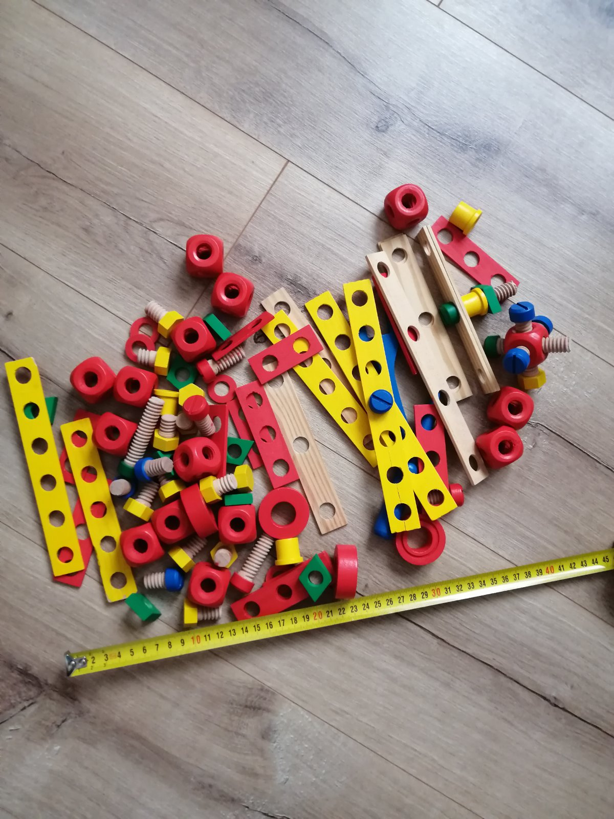 Je k tomu aj náradie, skrutkovač, kľúč... Všetko z dreva.