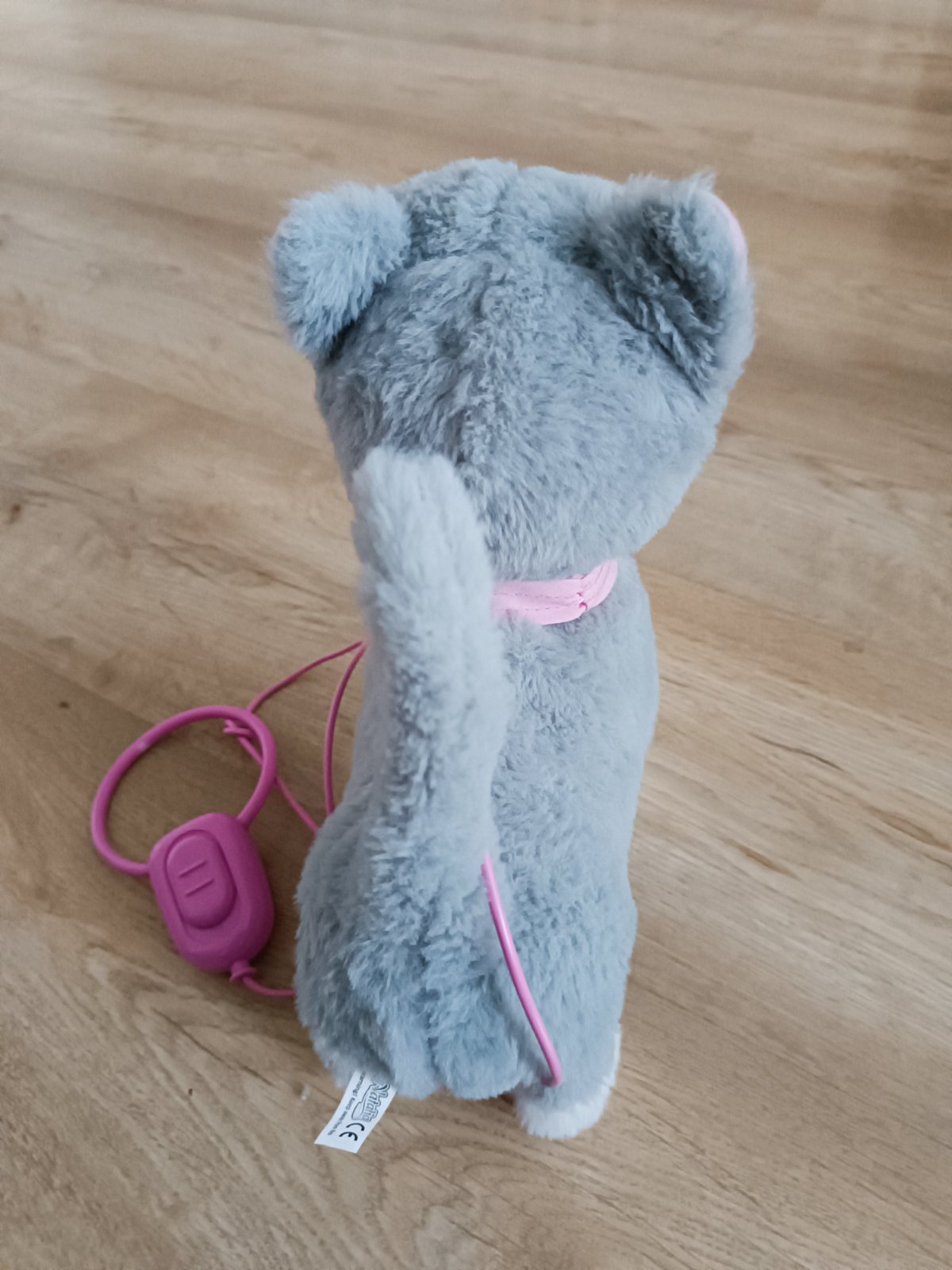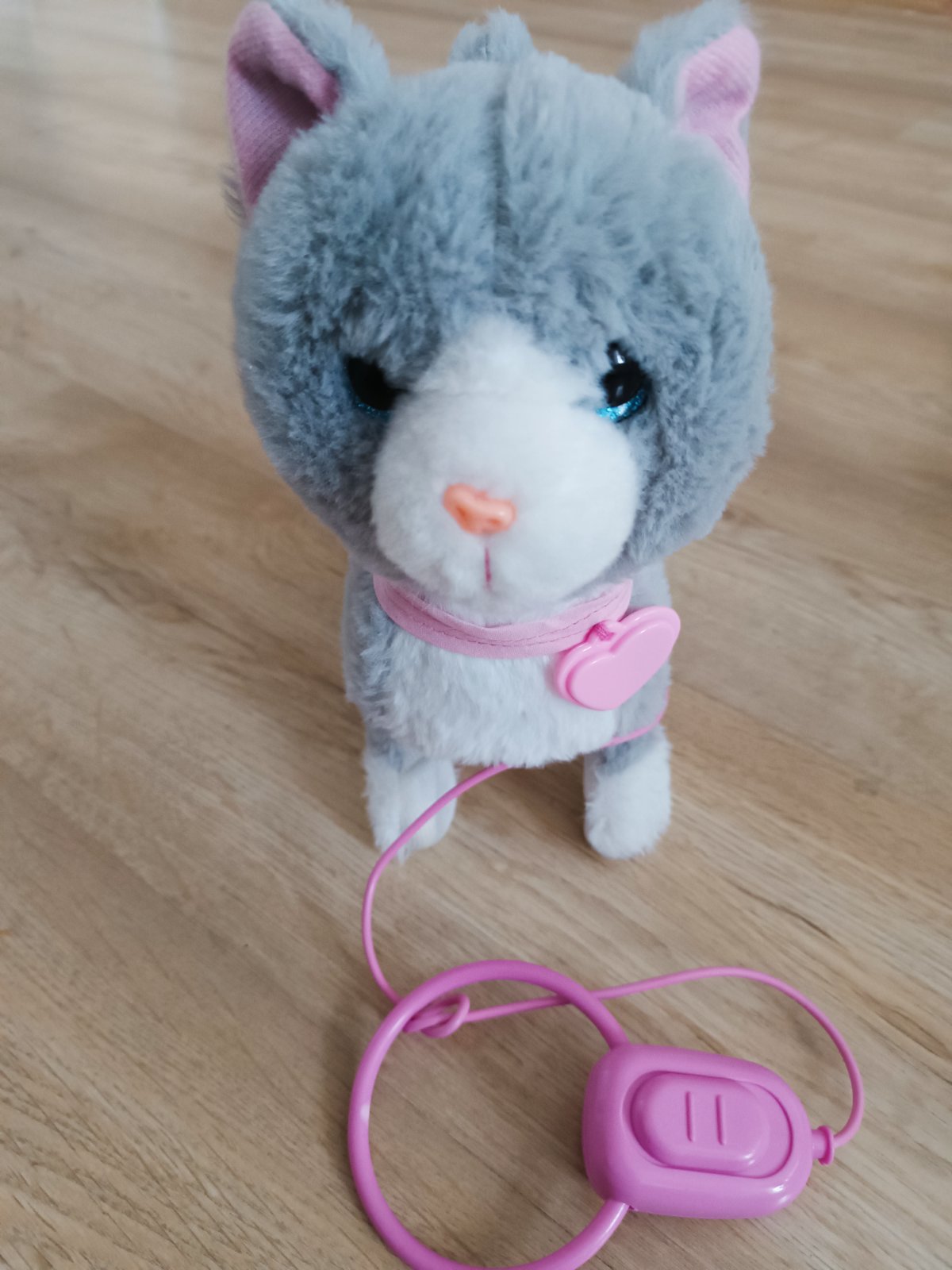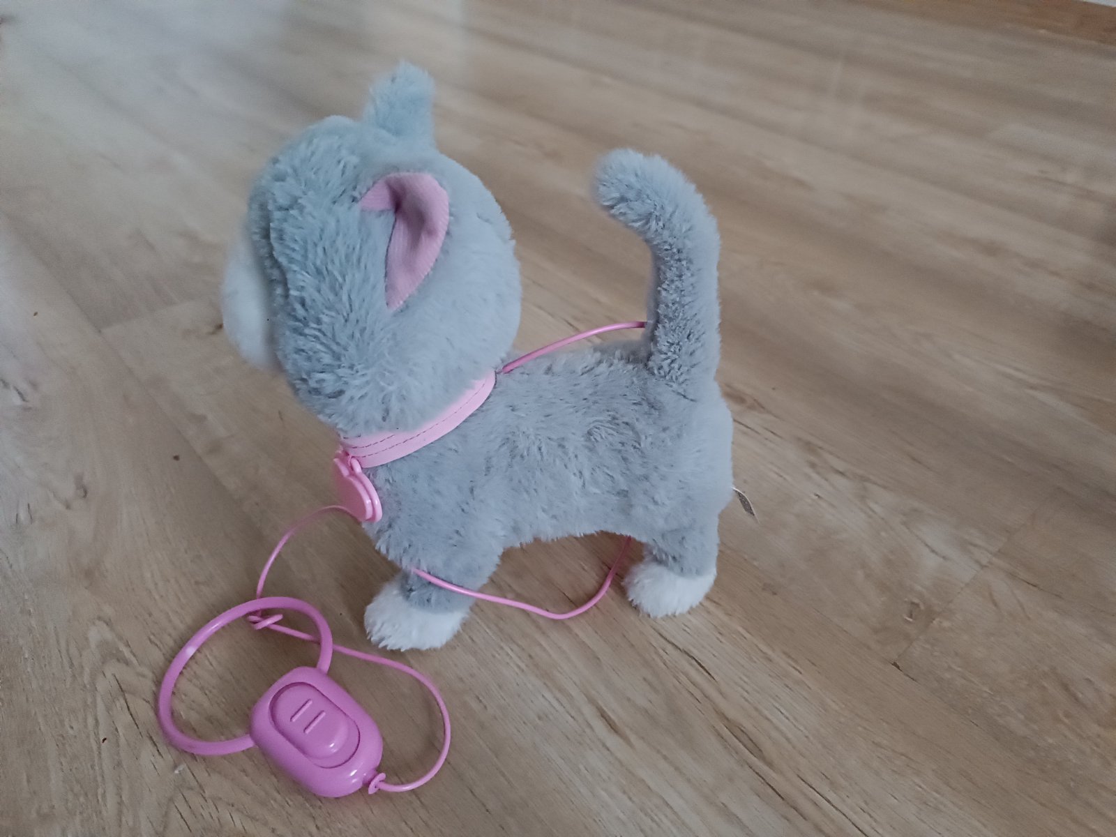Interaktívna mačka na vodítku, ide vpred, mňauka, vrti chvostikom