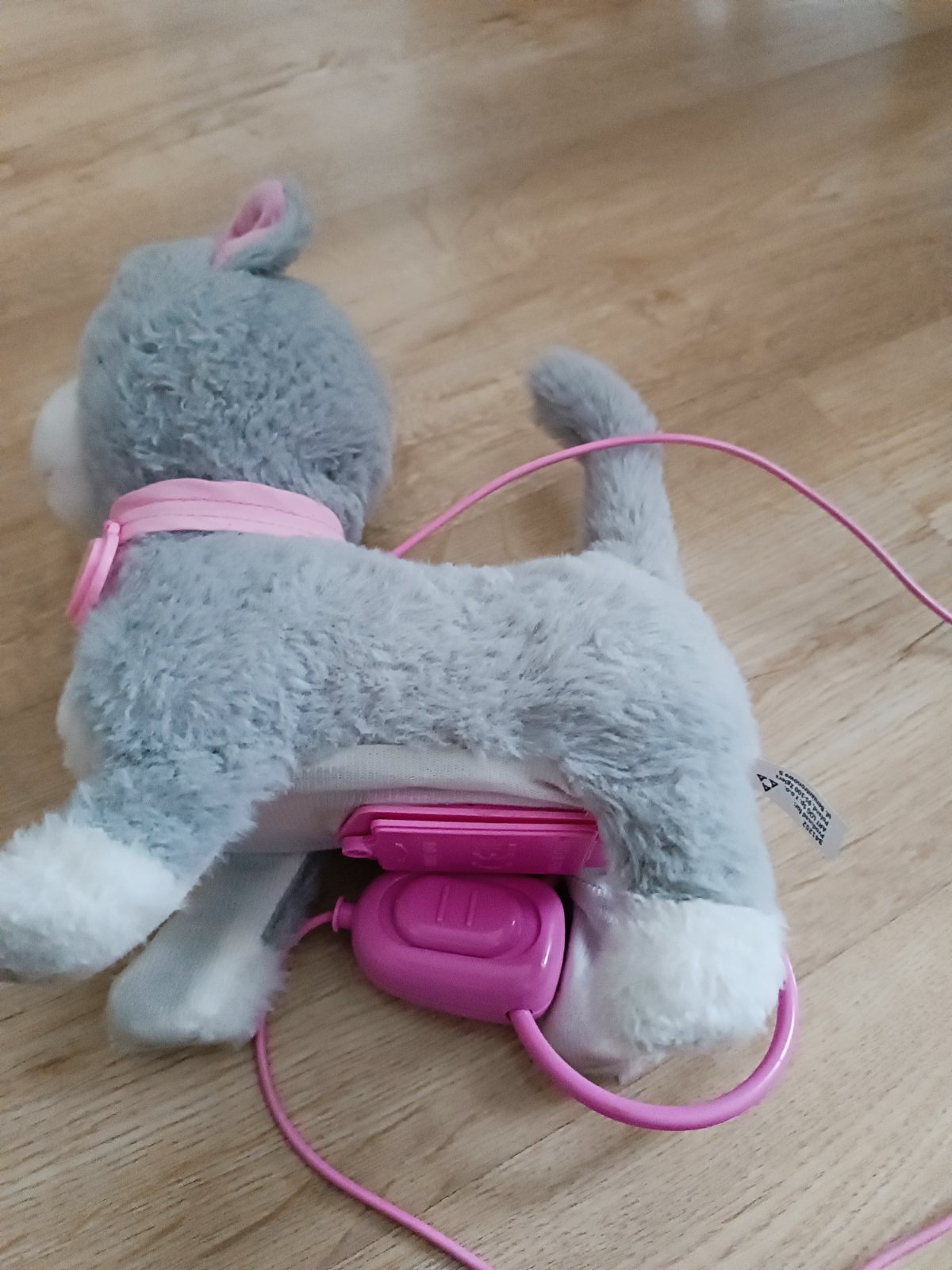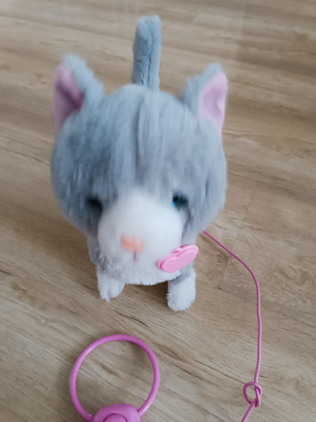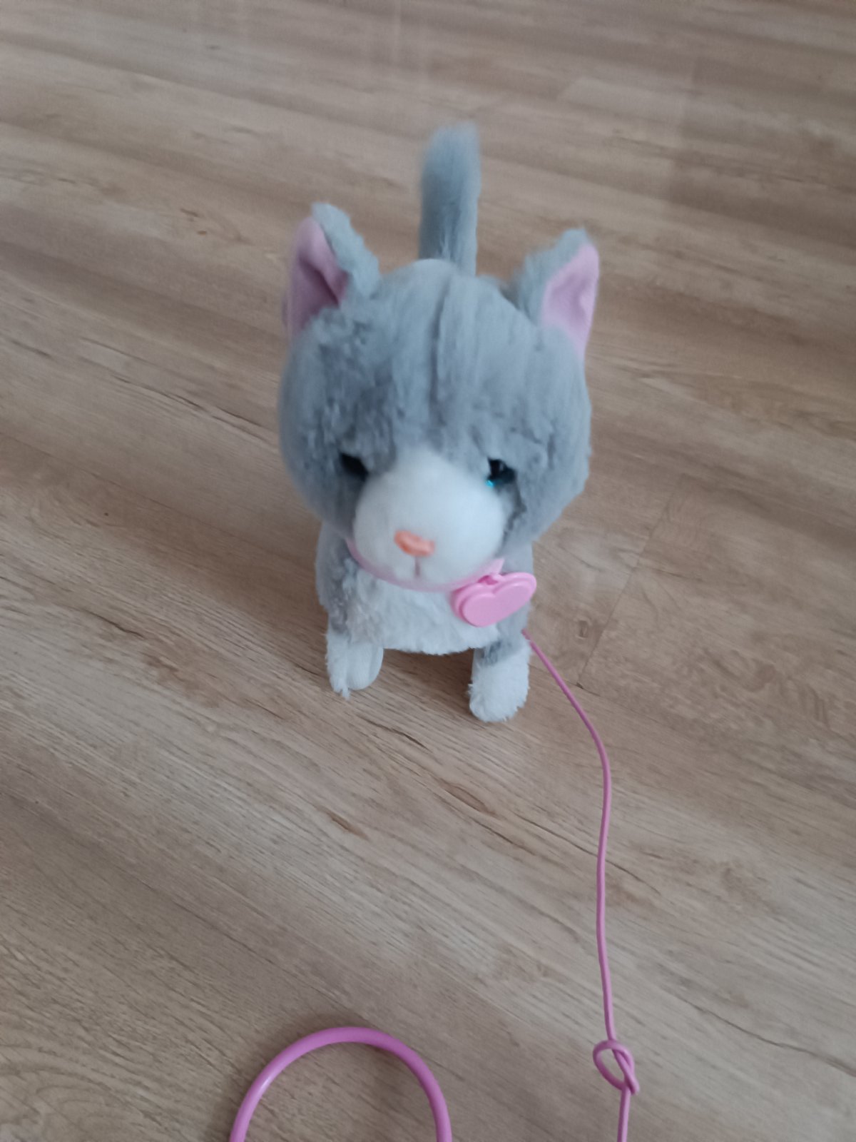 Interaktívna mačka na vodítku, ide vpred, mňauka, vrti chvostikom