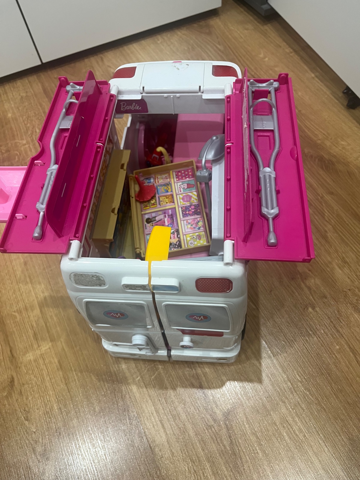 Autíčko na diaľkové ovládanie, otvára sa strecha, tadiaľ vkladať bábiku. Boli k nemu fixa na malovanie autíčka. Tu už nemáme. Ak máte iné hračky rovnakej značky možete pouzit fixi ktore boli k to...
