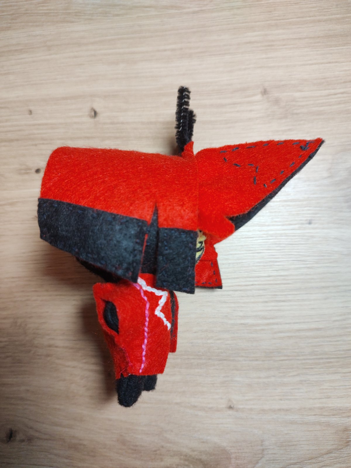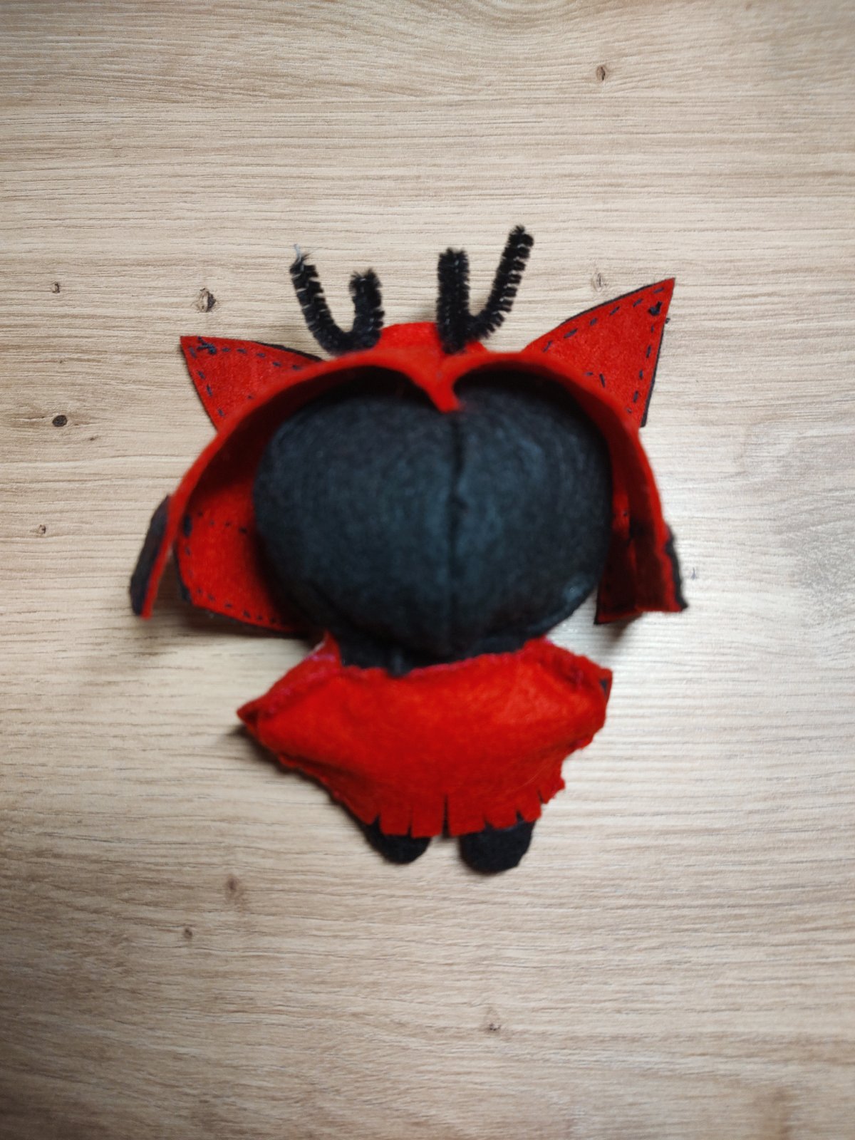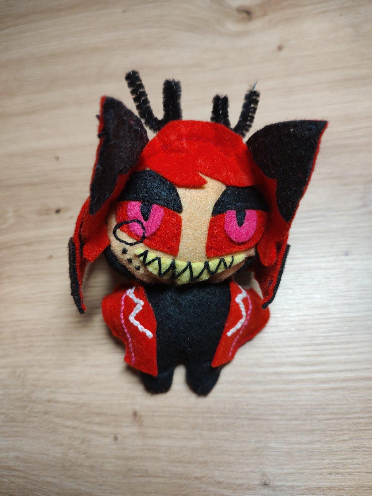 Ponúkam na predaj ručne vyrobenú plyšovú postavičku Alastor (Hazbin Hotel). Plyšák je kompletne šitý, bez lepidla, vrátane detailov, so snímateľným kabátom. Samotná látka je filc, parožky z chlpatého drôtu. Z tohto dôvodu nevhodné pre tých najmenších, ale skôr pre vášho teenagera ;) Výška bez uší je cca 10 cm. Ponúkam za 4 € + poštovné.