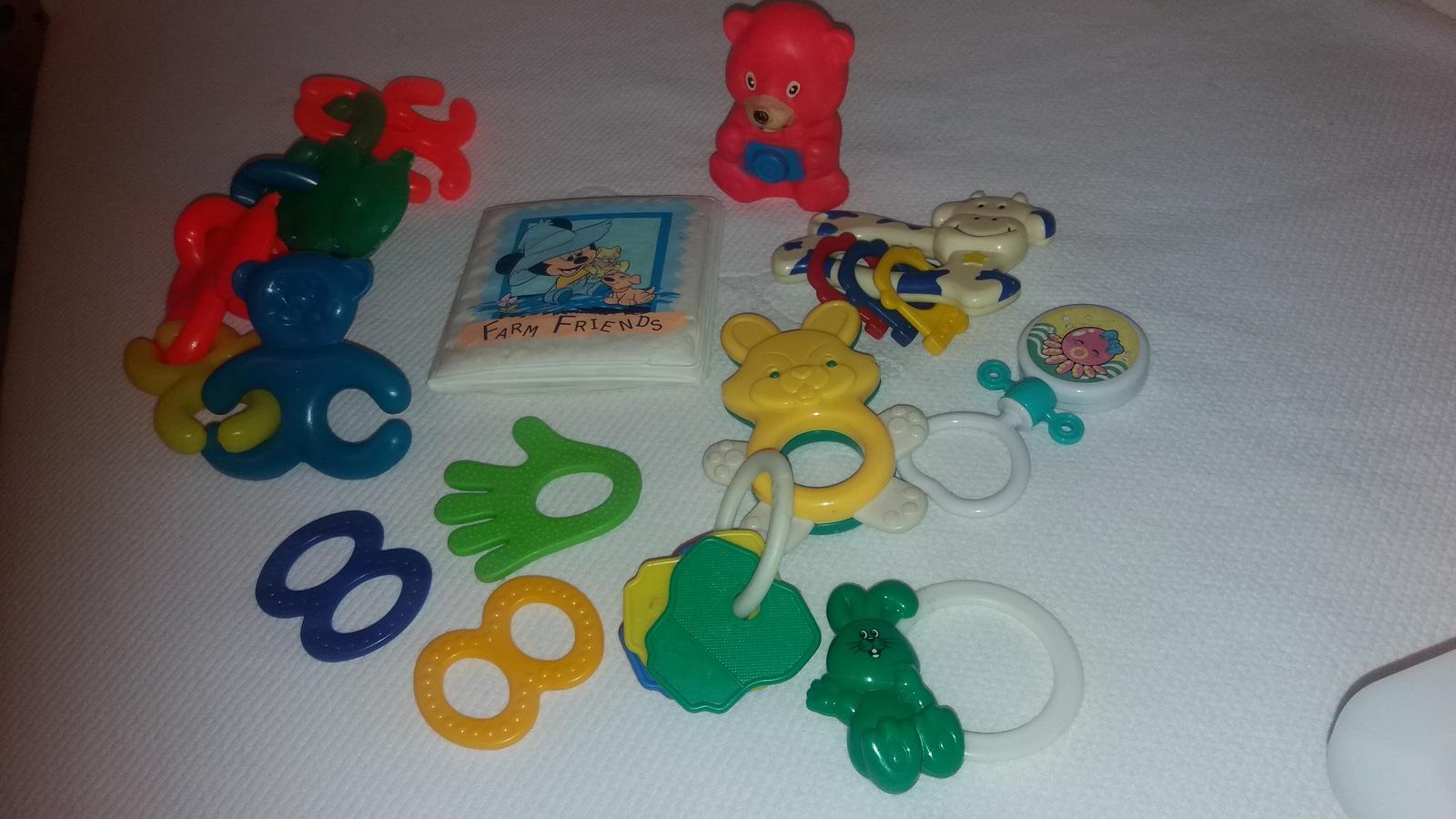 balíčk prvých hračiek, hrkálky, hryzátka, gumenná knižka, ktorá píska. všetko v zachovalom stave, cena spolu