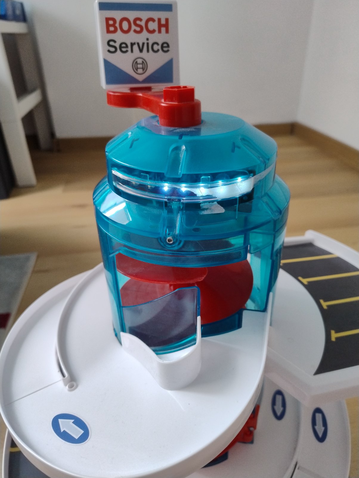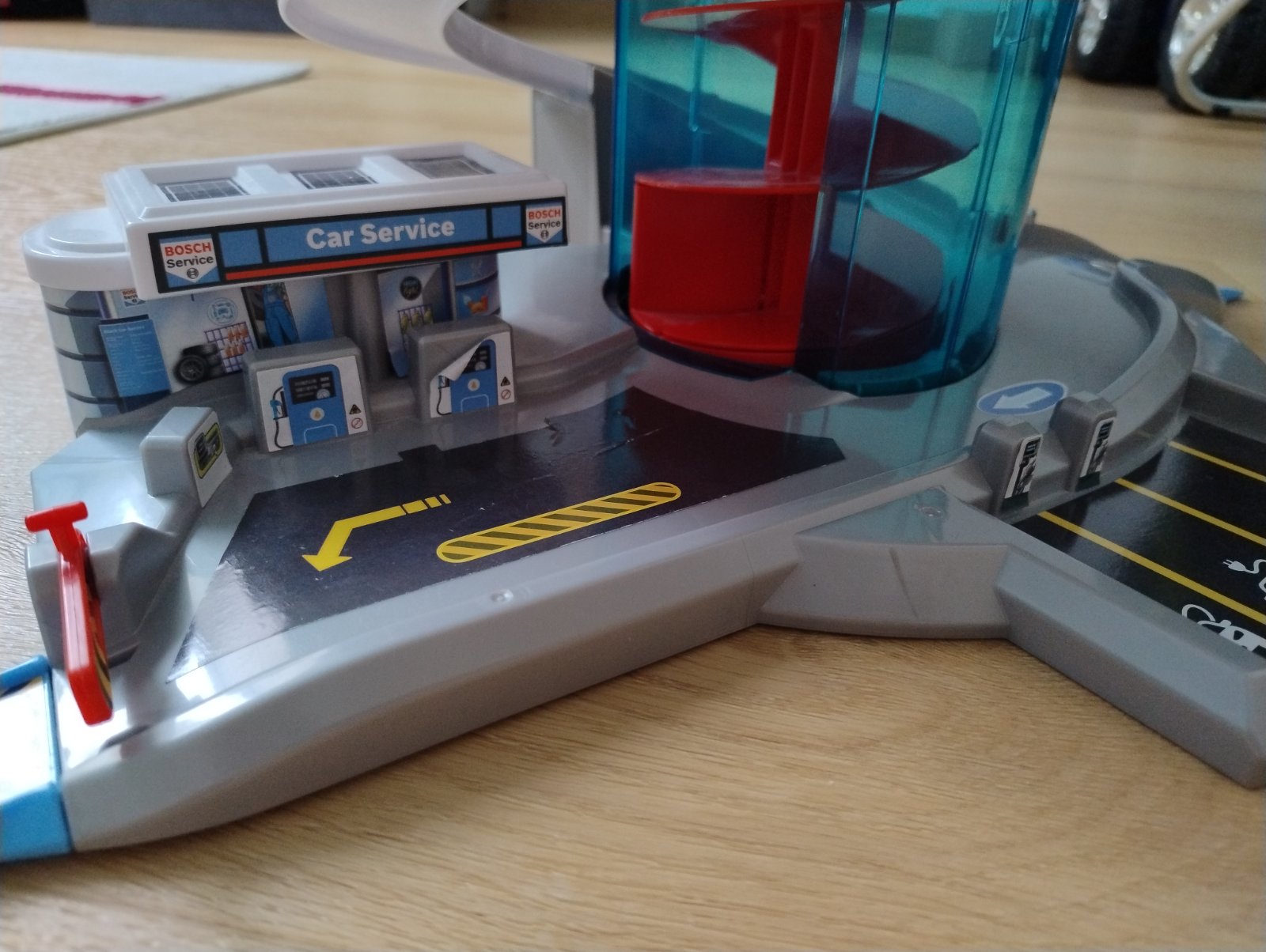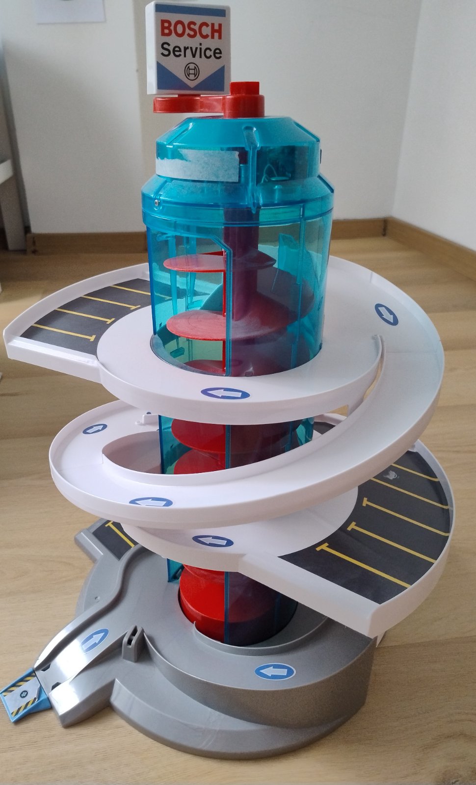 Parkovisko s výškou 56 cm, ktoré navrhla spoločnosť Bosch Autoservice, má obojstranný výťah, ktorý otáčaním špirály dopravuje autá do rôznych úrovní. Súčasťou sú svetelné a zvukové efekty, ako aj dve vozidlá, výjazdy a štyri benzínové pumpy.