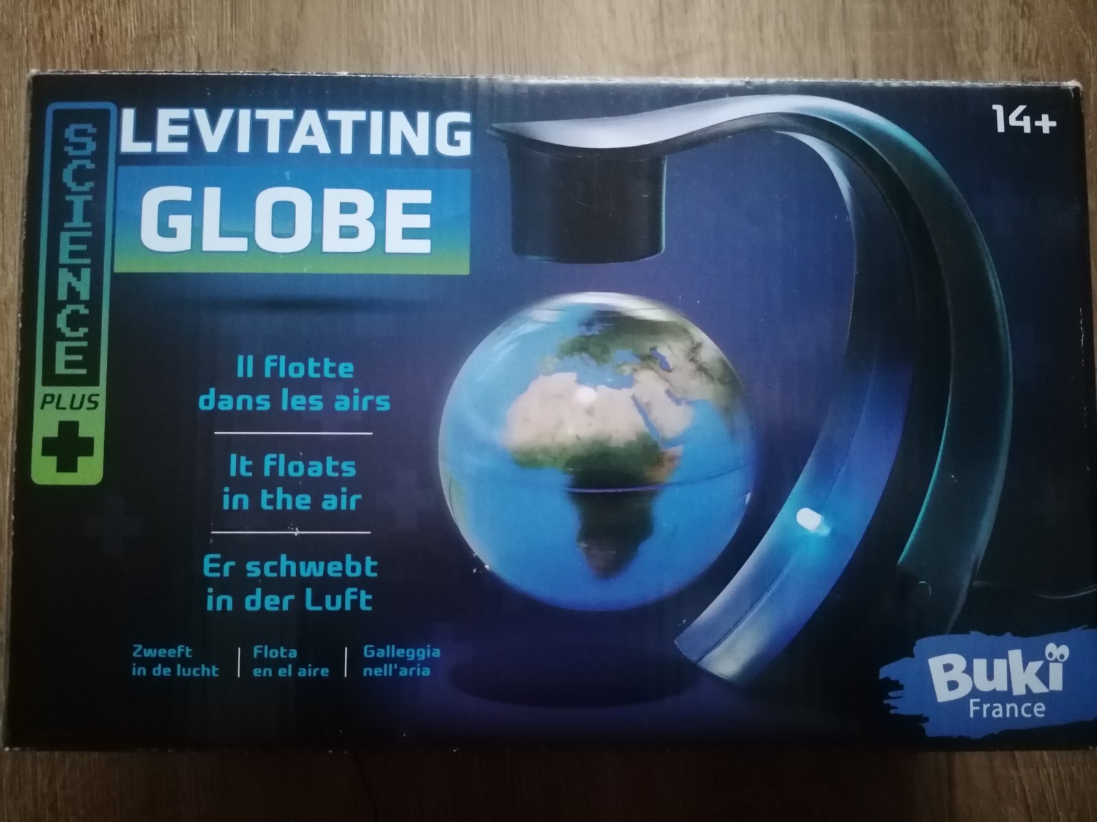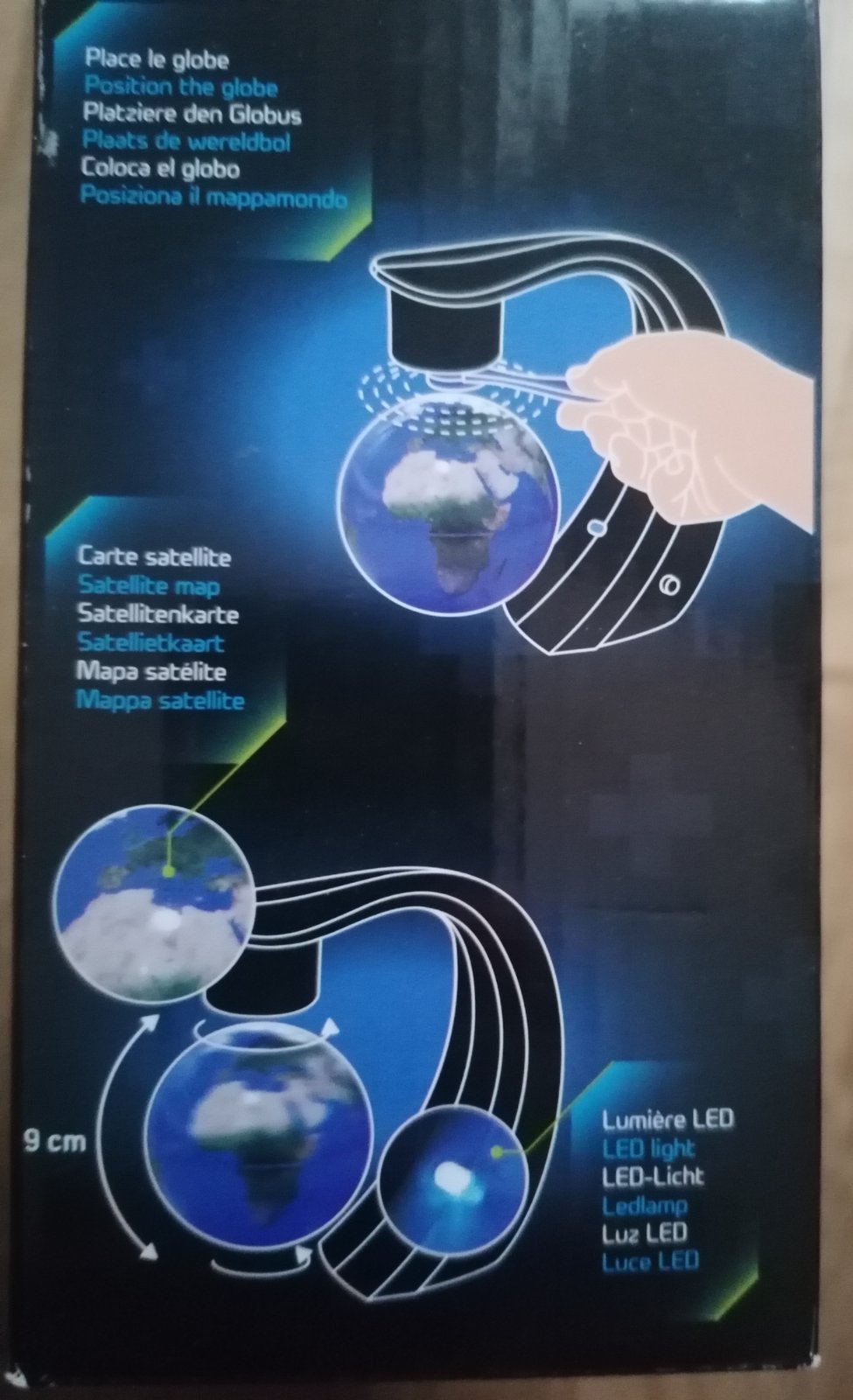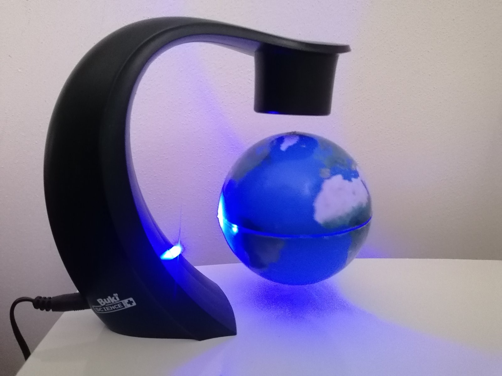 Levitujuci glóbus, priemer 9 cm, modré led podsvietenie. Cena 9 eur plus poštovné.