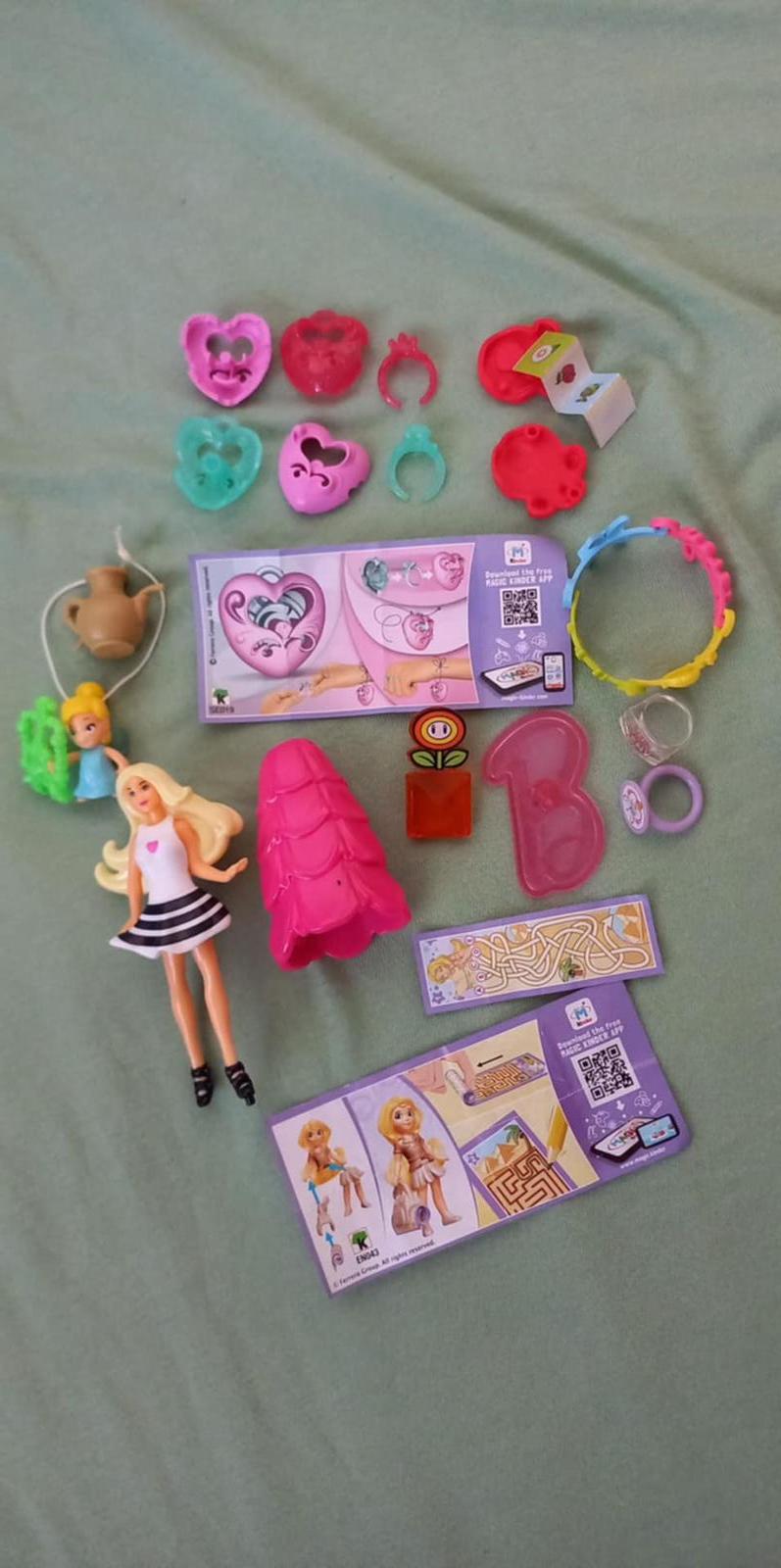 drobnosti pre dievčatko-2x srdiečko s vloženým prstienkom, 2x prstienky, malá bábika ako prívesok, väčšia bábika so šatami na prezlečenie, náramok, drobnosti,...cena 7 €