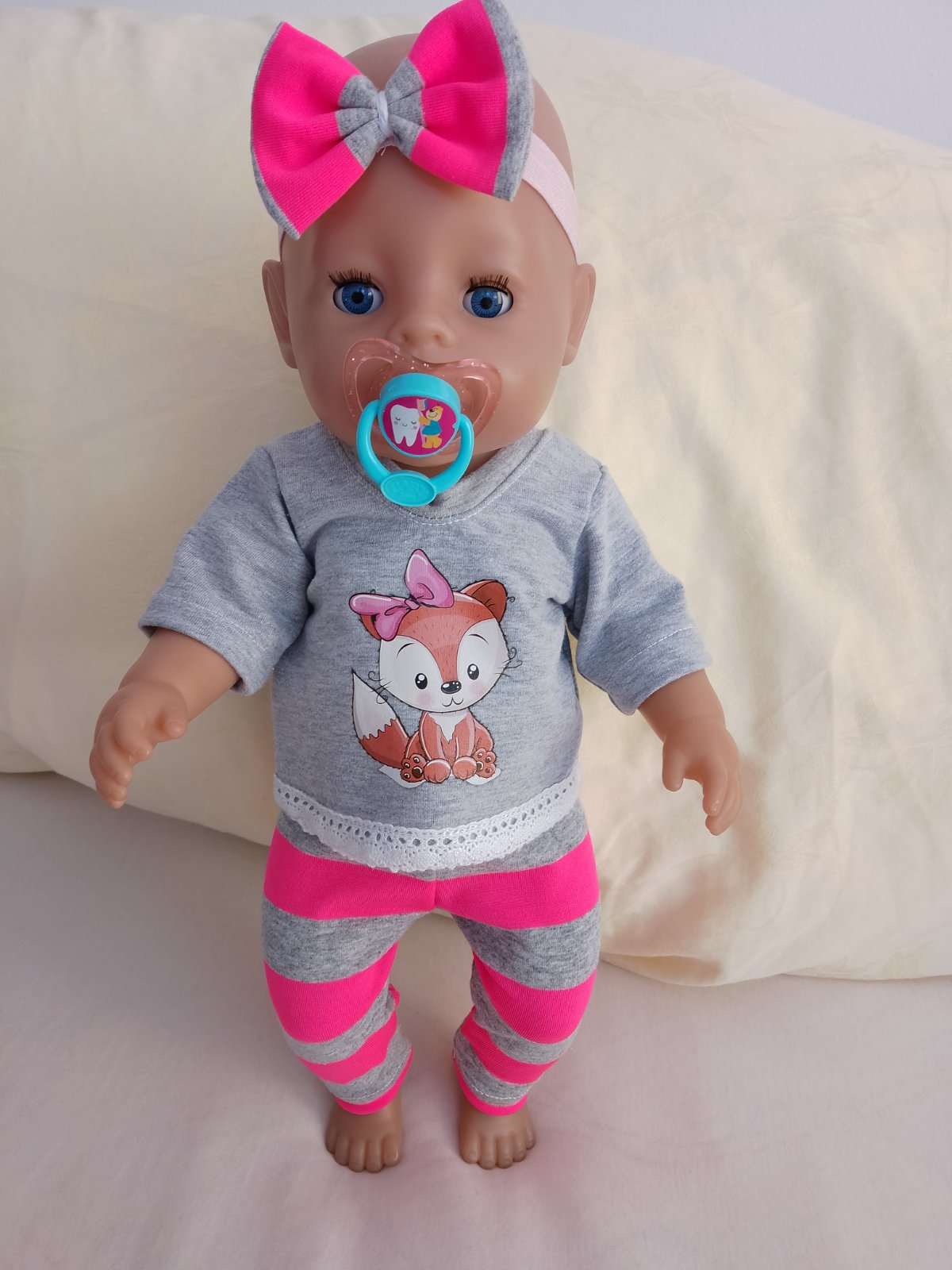 oblečenie je šité, nehrané. Vhodné pre bábiku baby born 43 cm.