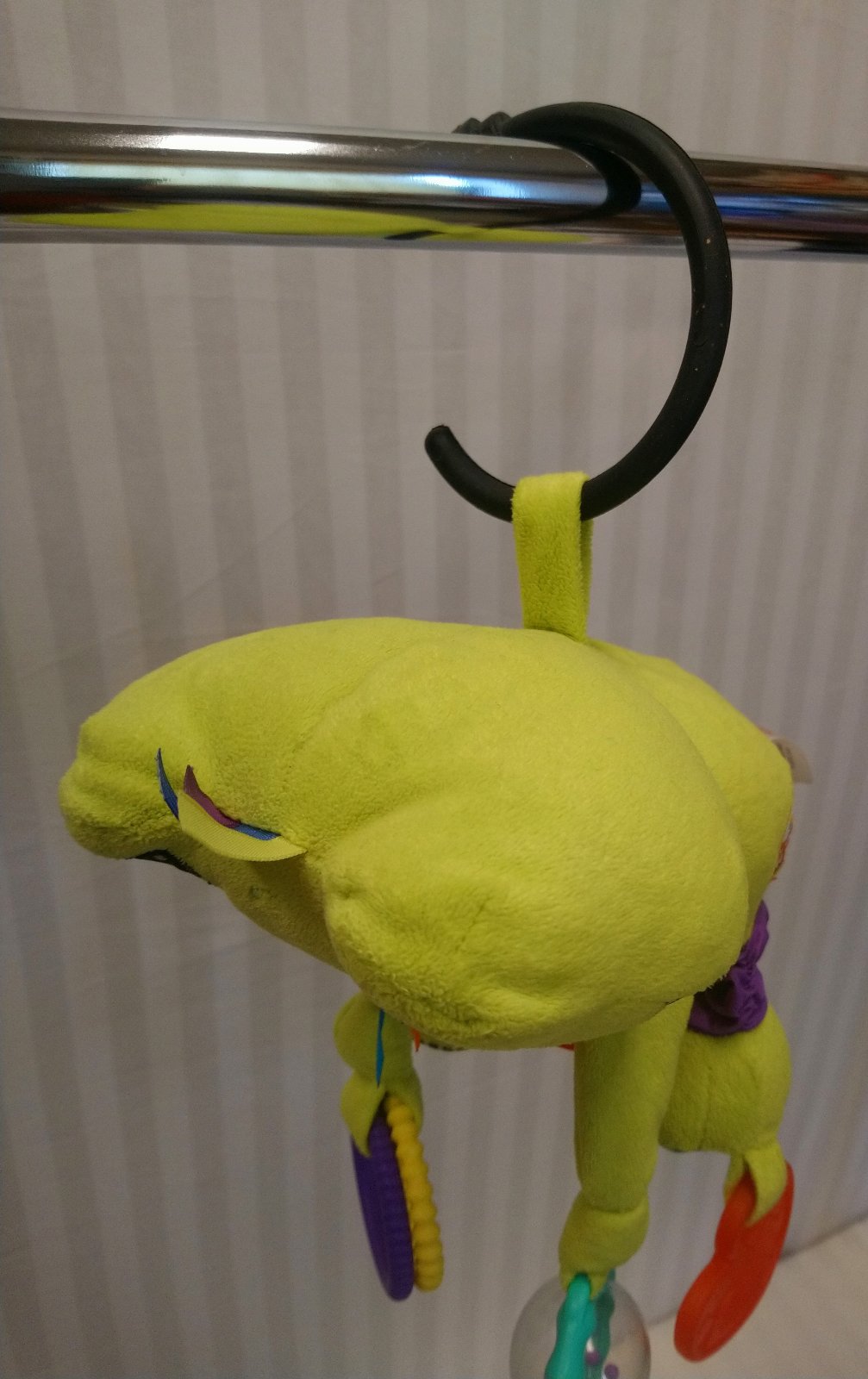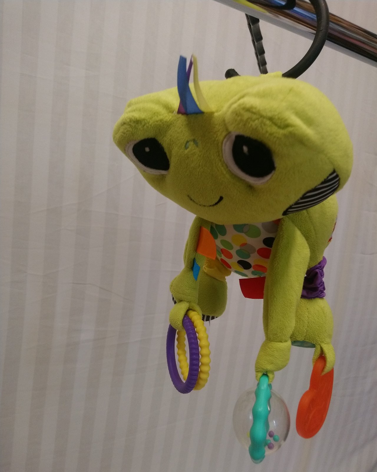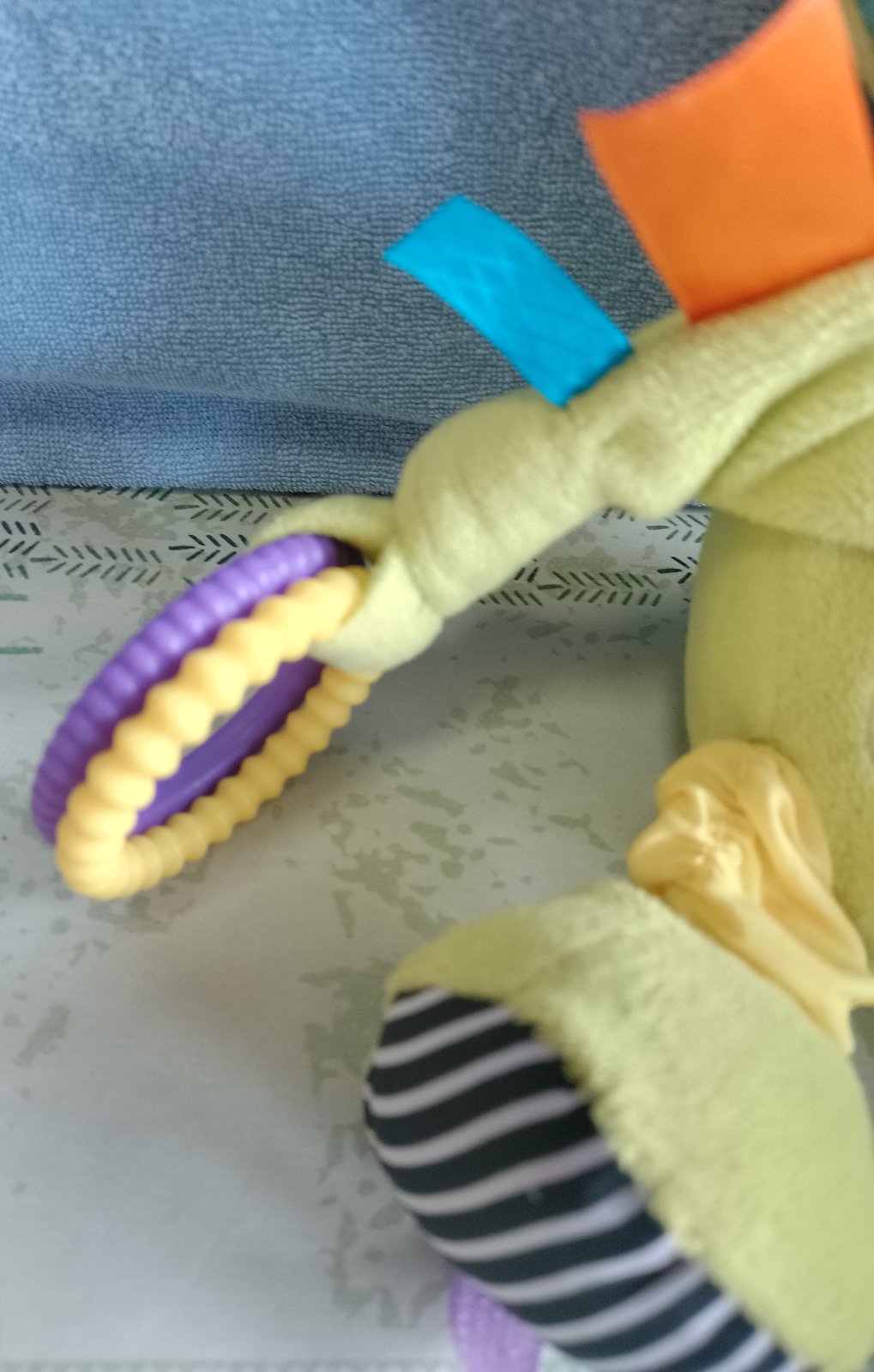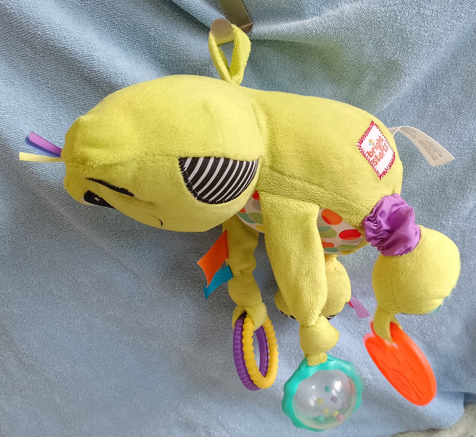 plyšová zavesovacia Žaba je prekrásna žabka, ktorú možno zavesiť alebo len tak posadiť. Na pravej ruke má krúžky a látkové pásiky, v ľavej ruke drží hrkálku, na ľavej nožičke má pripevnené hryzátko. Rôzne časti tela sú vyrobené z rôznych materiálov preto si pri tejto hračke vie dieťatko rozvíjať hmat, sluch je rozvíjaný vďaka hrkaniu a šušťaniu jednotlivých materiálov a zrak podporujú rôzne farby, ktoré na žabke sú.