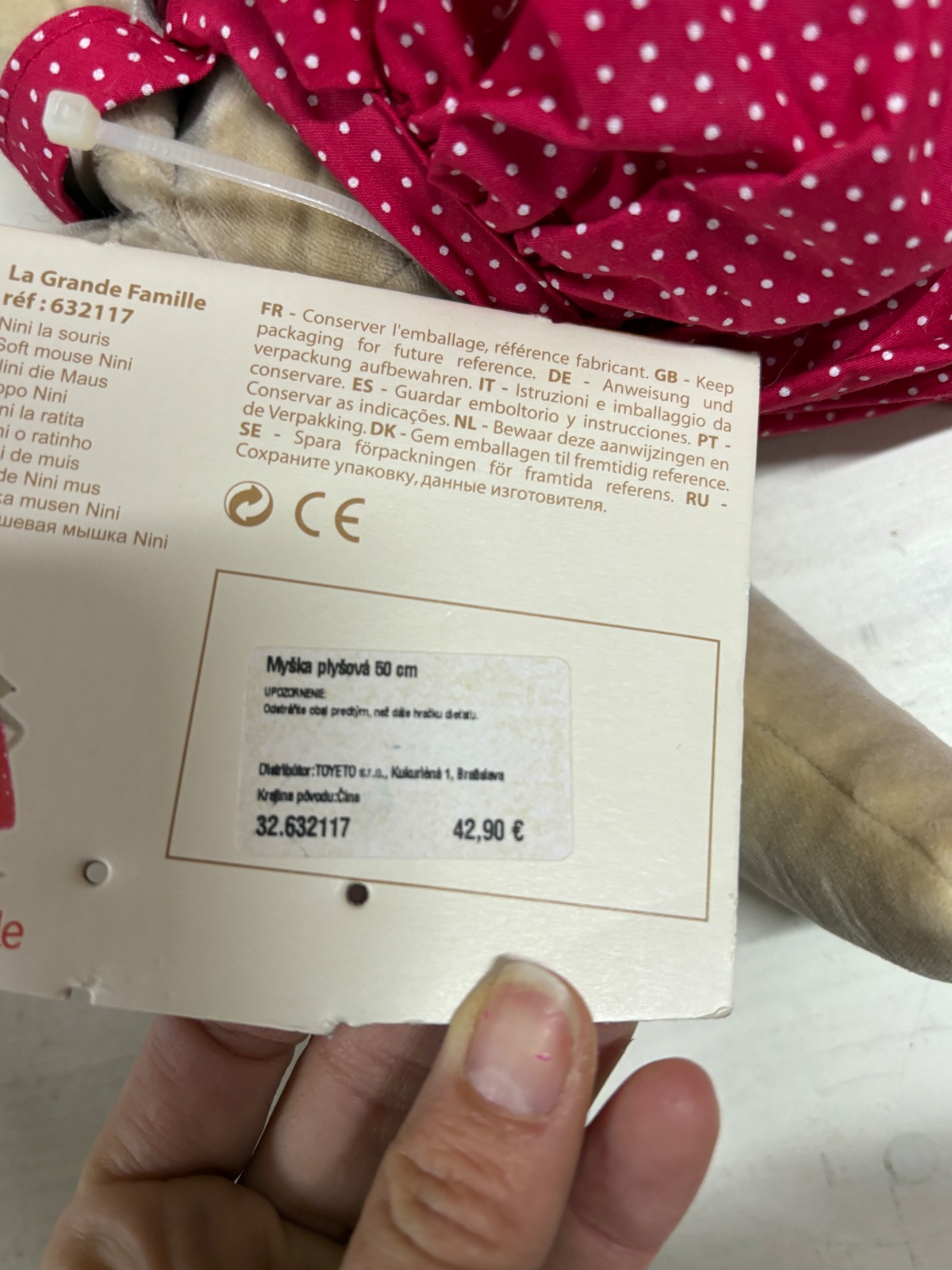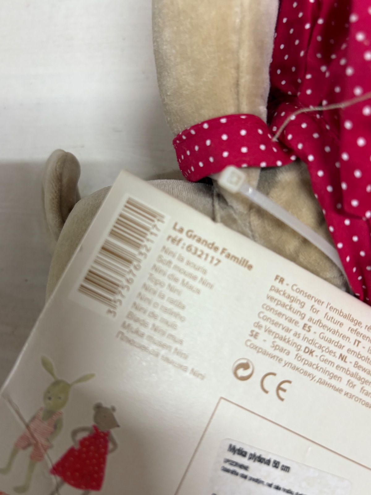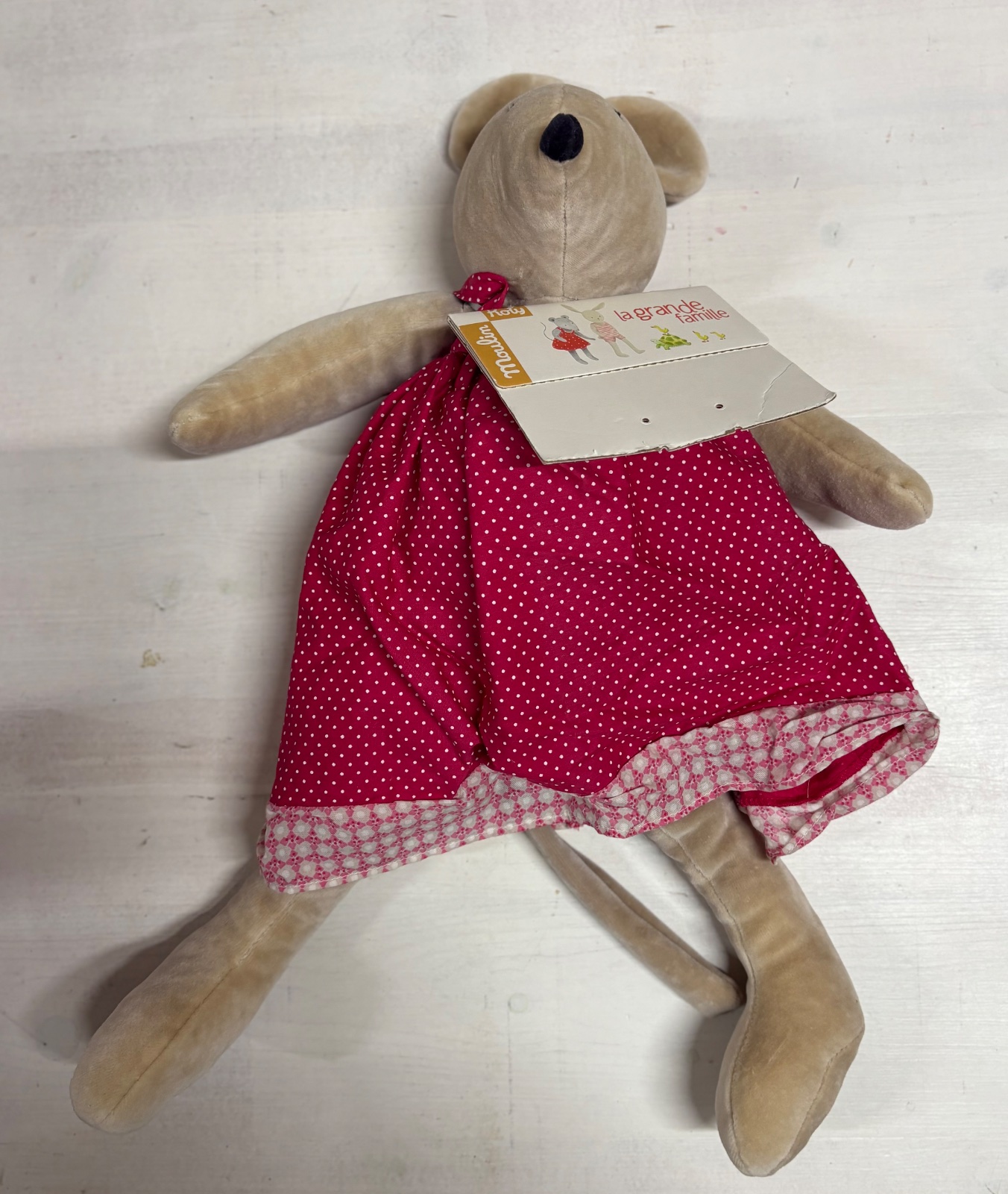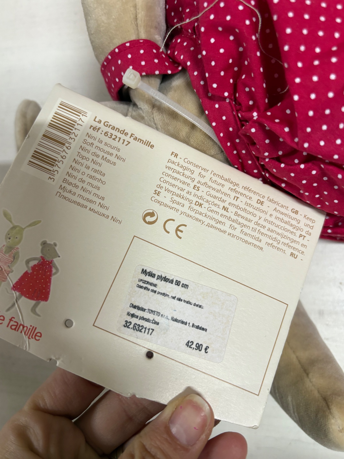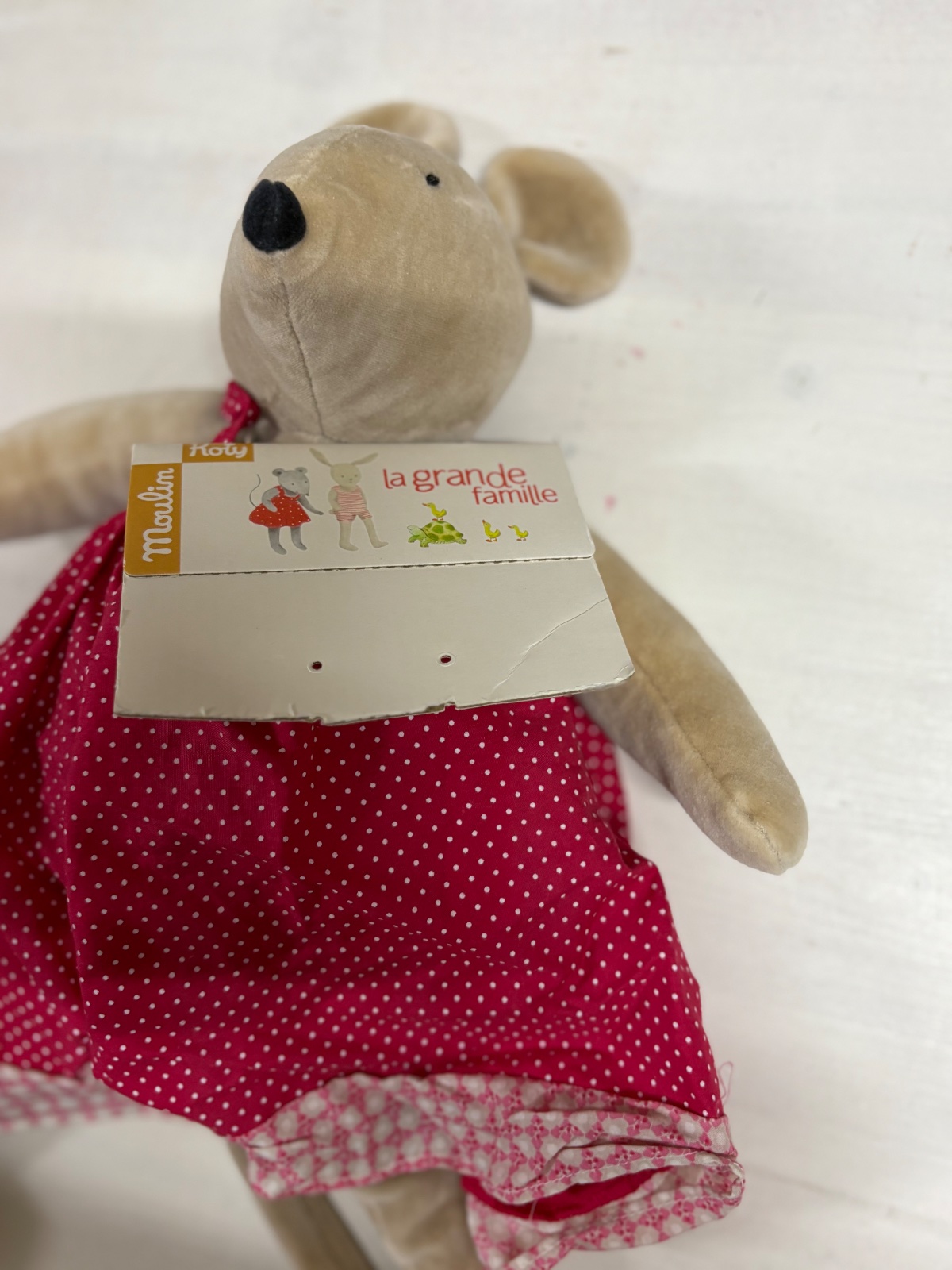 Roztomilá plyšová myška v krásnych červených šatočkách z dielne francúzskej značky Moulin Roty je mäkká, príjemná na dotyk, ideálna na hranie, do postieľky k zaspávaniu, i na cesty. Svojím jemným štýlom a prevedením je vhodná pre dievčatká.