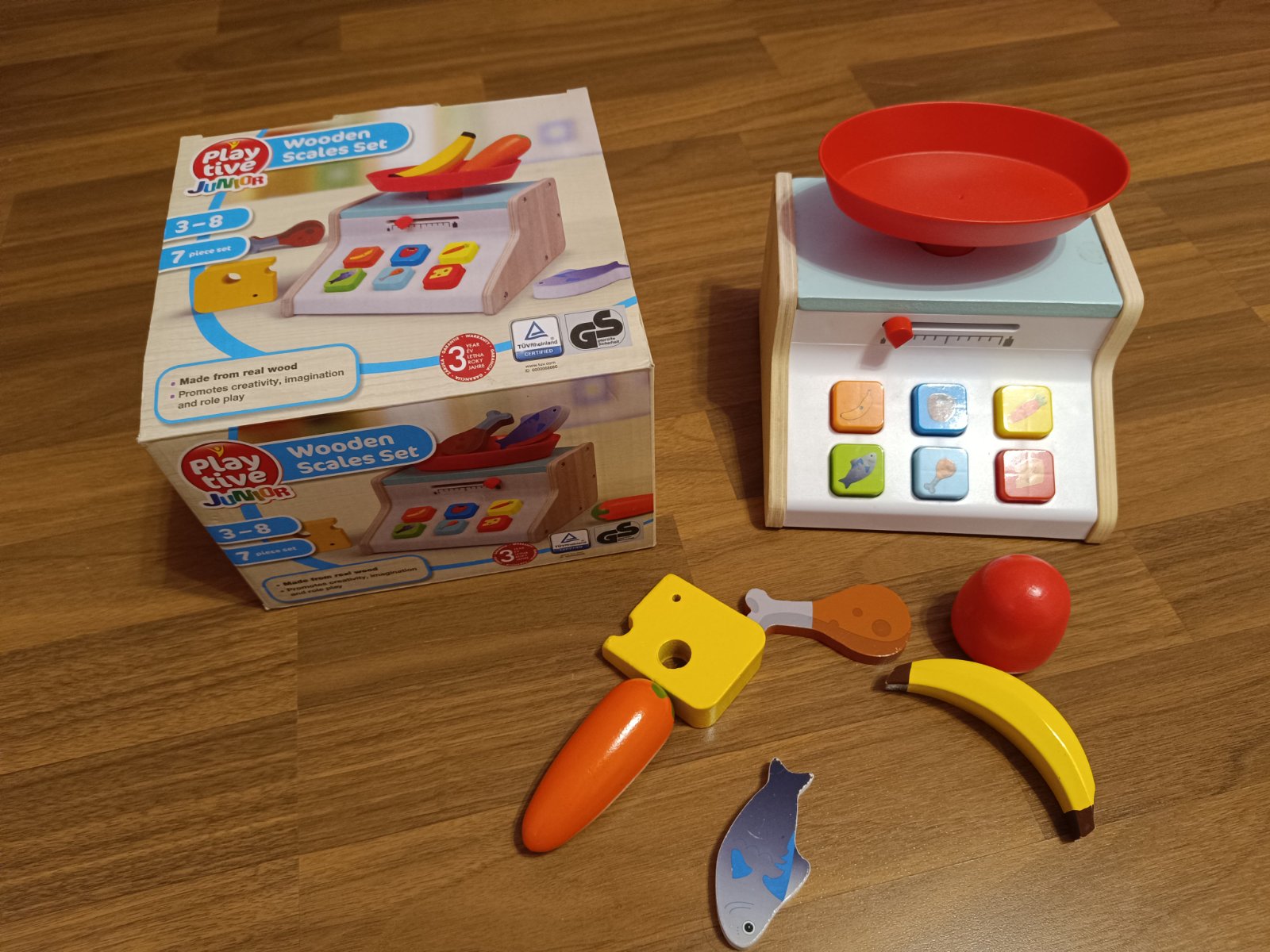 hrací drevený set iba na objednávku obsahuje potraviny 4 plátky paradajok, 4 uhorkové plátky, 4 cibulové krúžky, 3 kúsky z papriky, 3 šalátové lístky , in felt 1 plastová miska, 1 fľaška octu, 1 f...