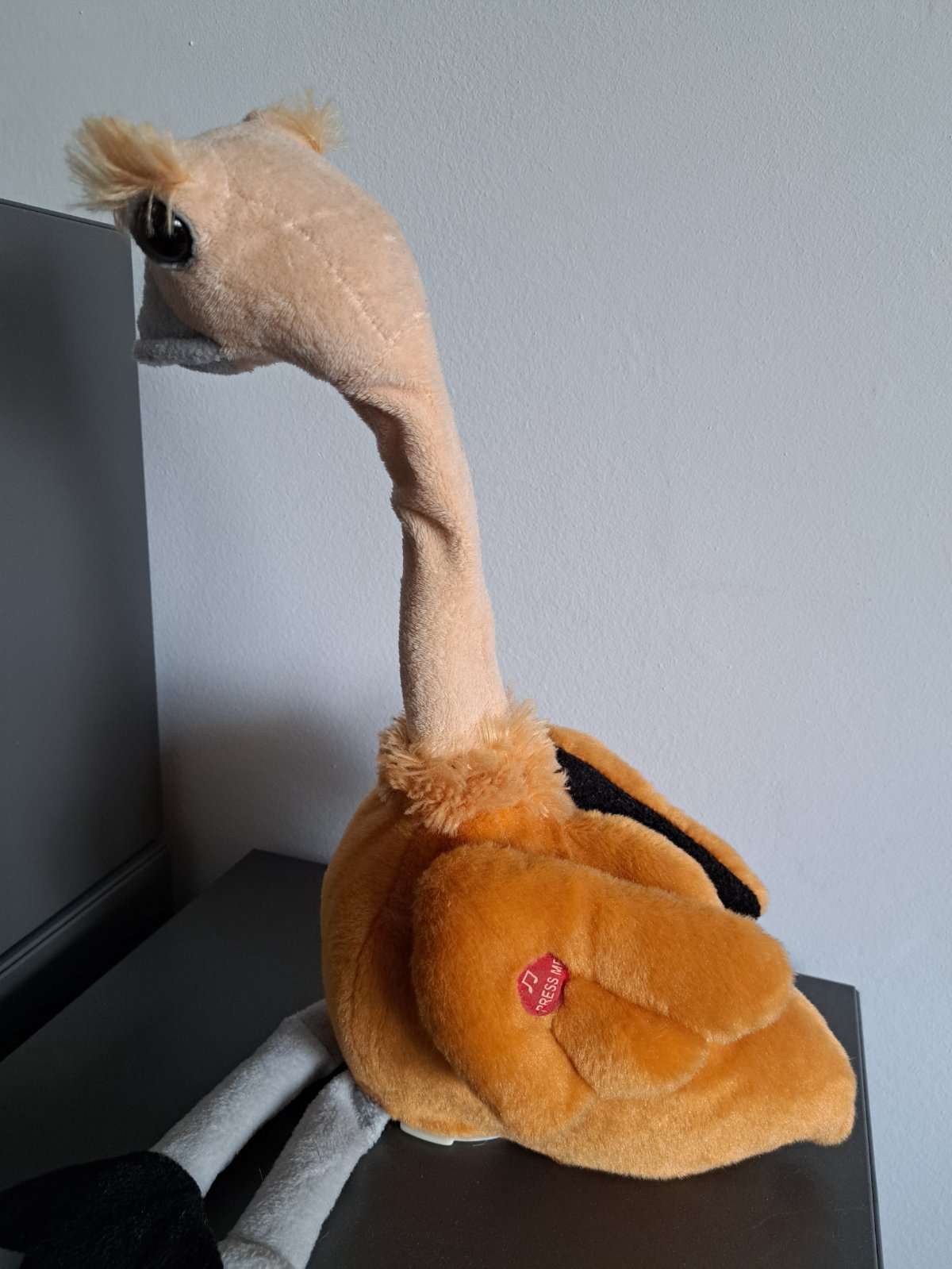 Treba vymeniť baterky, krk a telo je pevný, s baterkami spieva a točí krkom