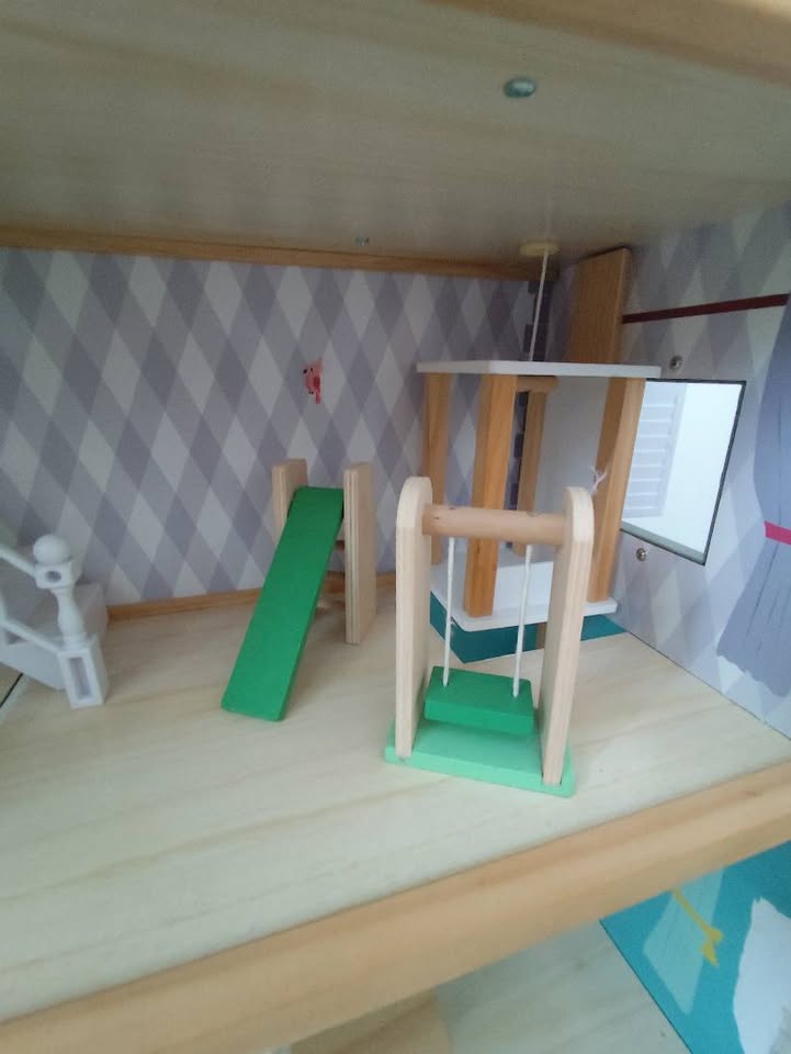Detský domček s Lidl XXL s výťahom do toho všetko vybavenie v original krabici plus samostane dokúpena posilovňa a zahrádny nábytok ten je trocha zalepený. Krasny domček 3 poschodia, výťah, okenice.