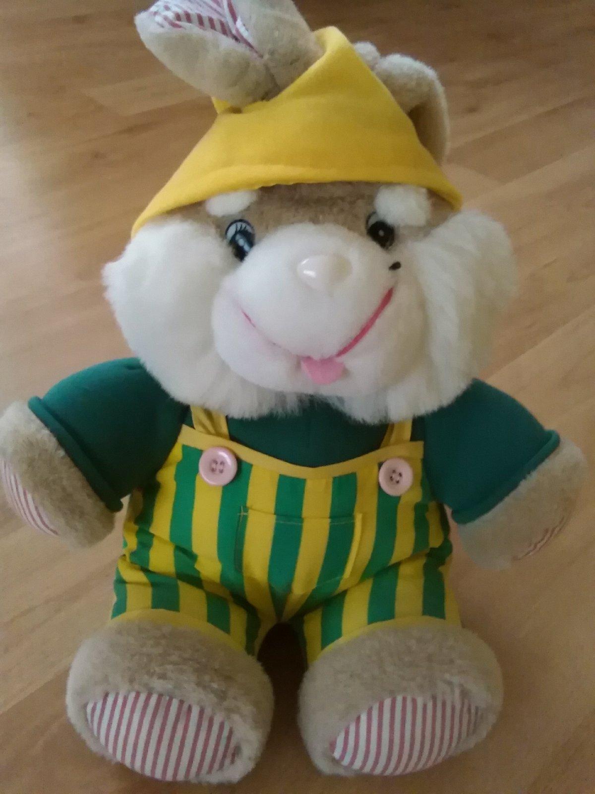 Krásny zajacik,zanovny len sedel v polici,top stav,výška 30cm