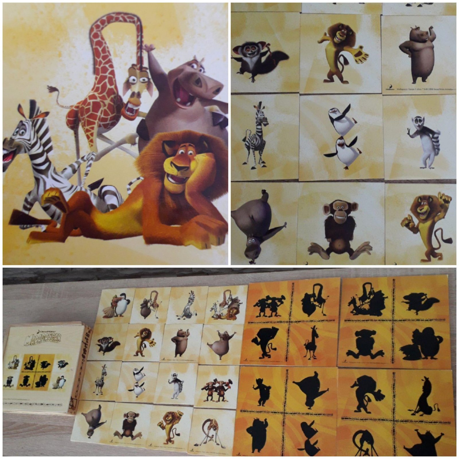 Drevená logická hra kde sa vkladaju zvieratka na spravne tiene z rozpravky Madagaskar
