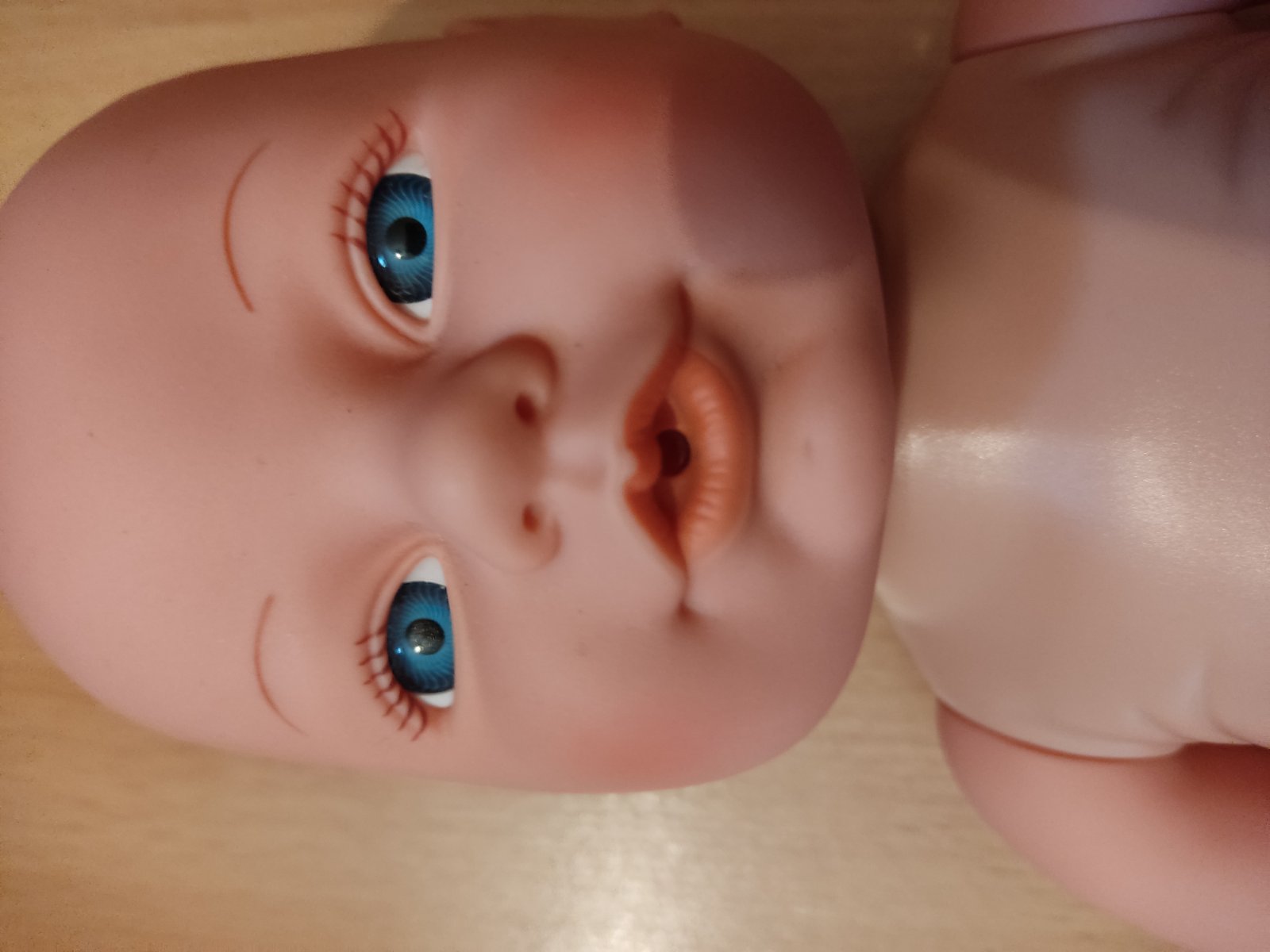 Mám aj nočník aj fľašu na pitie, pije vodu a keď sa stlačí gombík , tak ozajstné ciká. Má aj cumlík. Ako nová, málo hraná