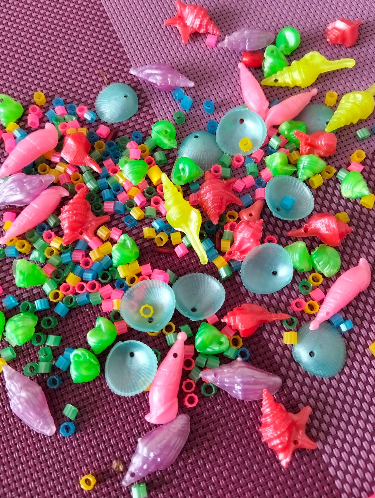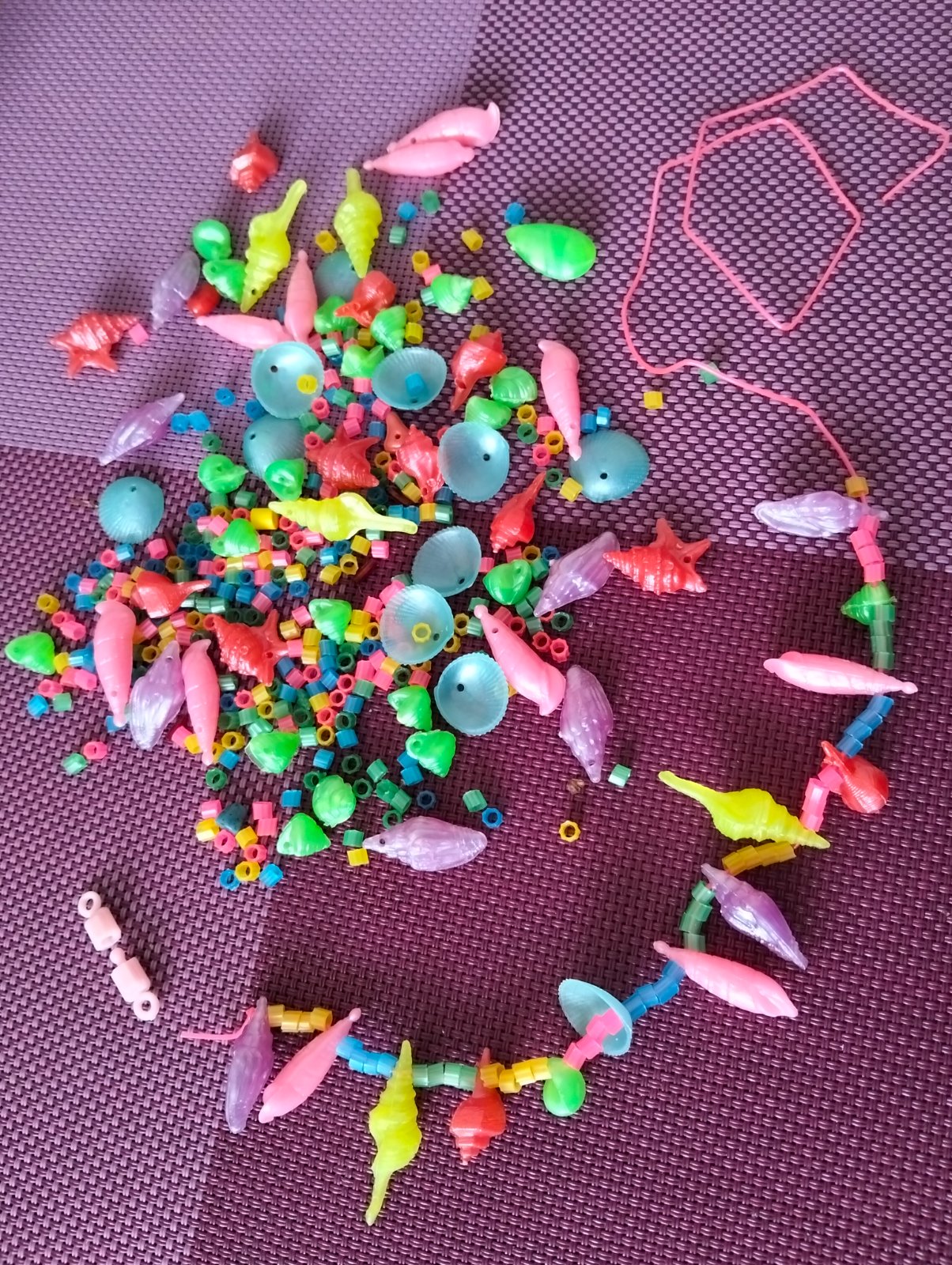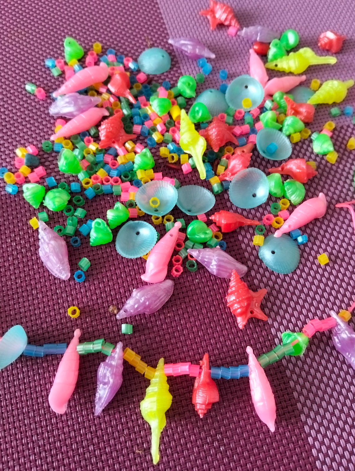 Farebné perleťové mušle a korálky na navliekanie. Spolu s povrázkom a zapínaním. Zábavné a kreatívne precvičovanie motoriky pre dievčatká.
