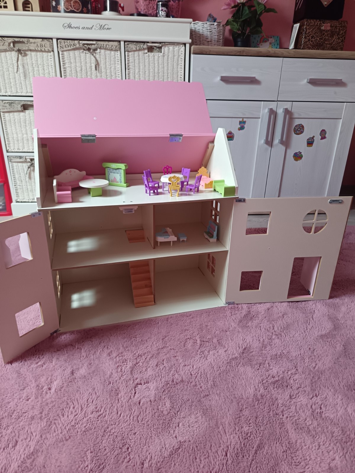 Predám hraný domček pre barbie .Domček má rozmery 117- 82,5- 30,5 cm,3 poschodia, výťah, 2 bábiky, nábytok a príslušenstvo. Domček má známky používania, ale je plne funkčný. Osobný odber.