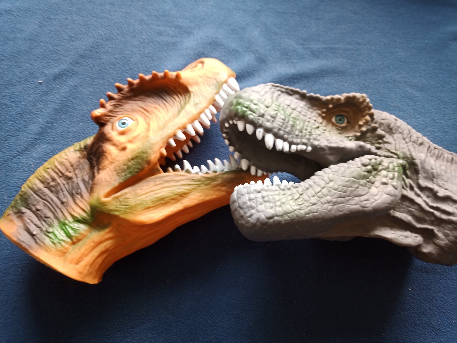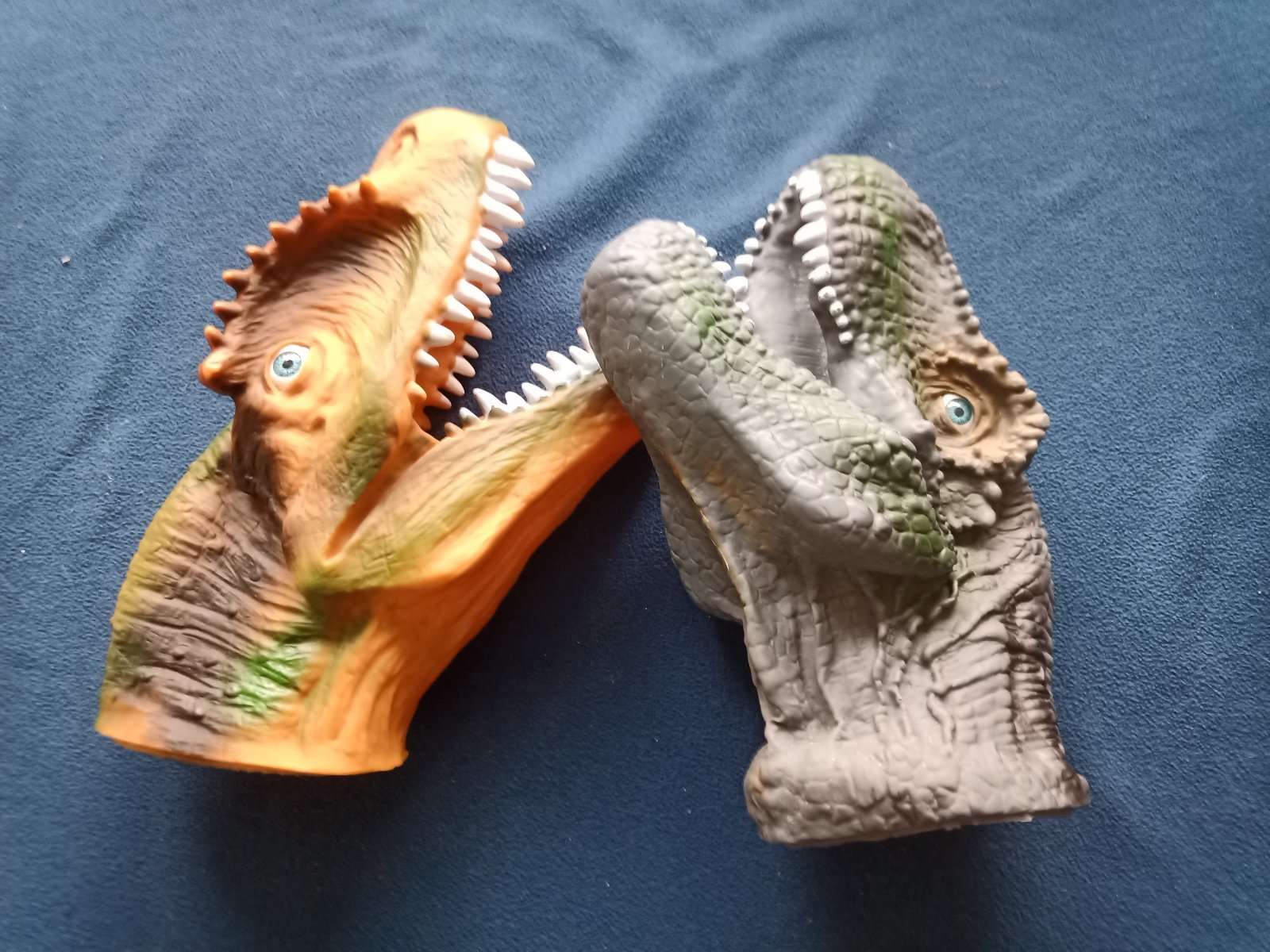 Trex a velociraptor dinosaurie bojové rukavice. Kupované v dráčiku, v peknom stave bez poškodenia.