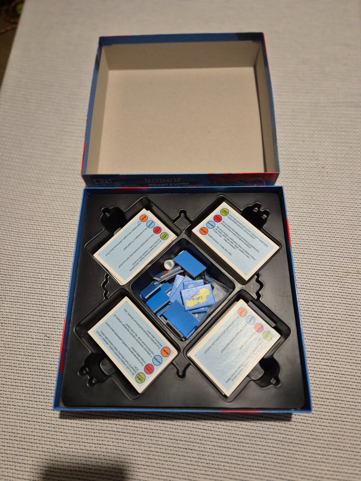Predám spoločenskú hru Slovensko junior otázky a odpovede. Obal vo vrchnej časti trošku zašpinený inak bez poškodení.