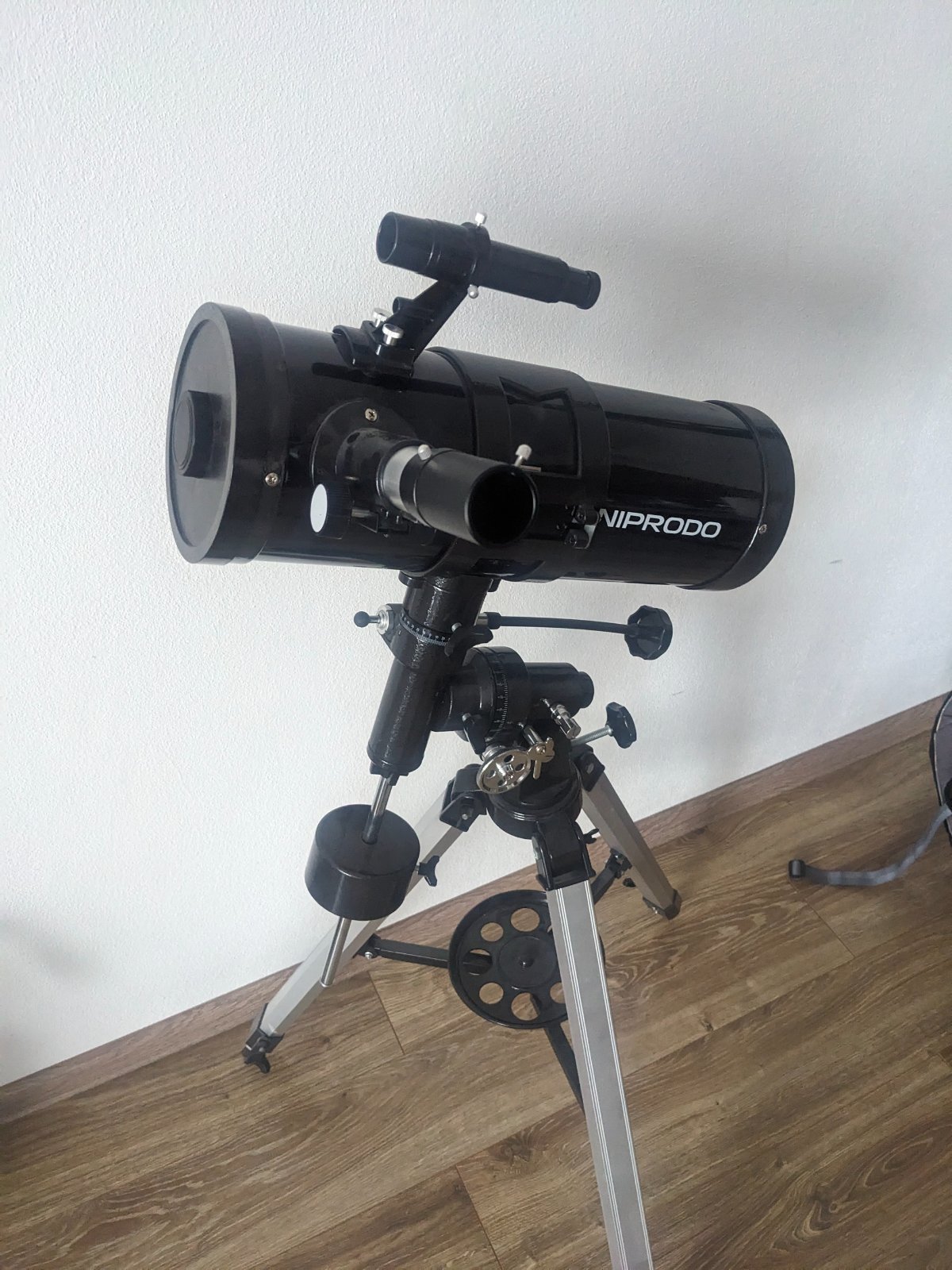 Bez poškodenia. Nadšenie z hviezd už bohužiaľ opadlo. Pôvodná cena bola +-200€. Teleskopické nohy.
