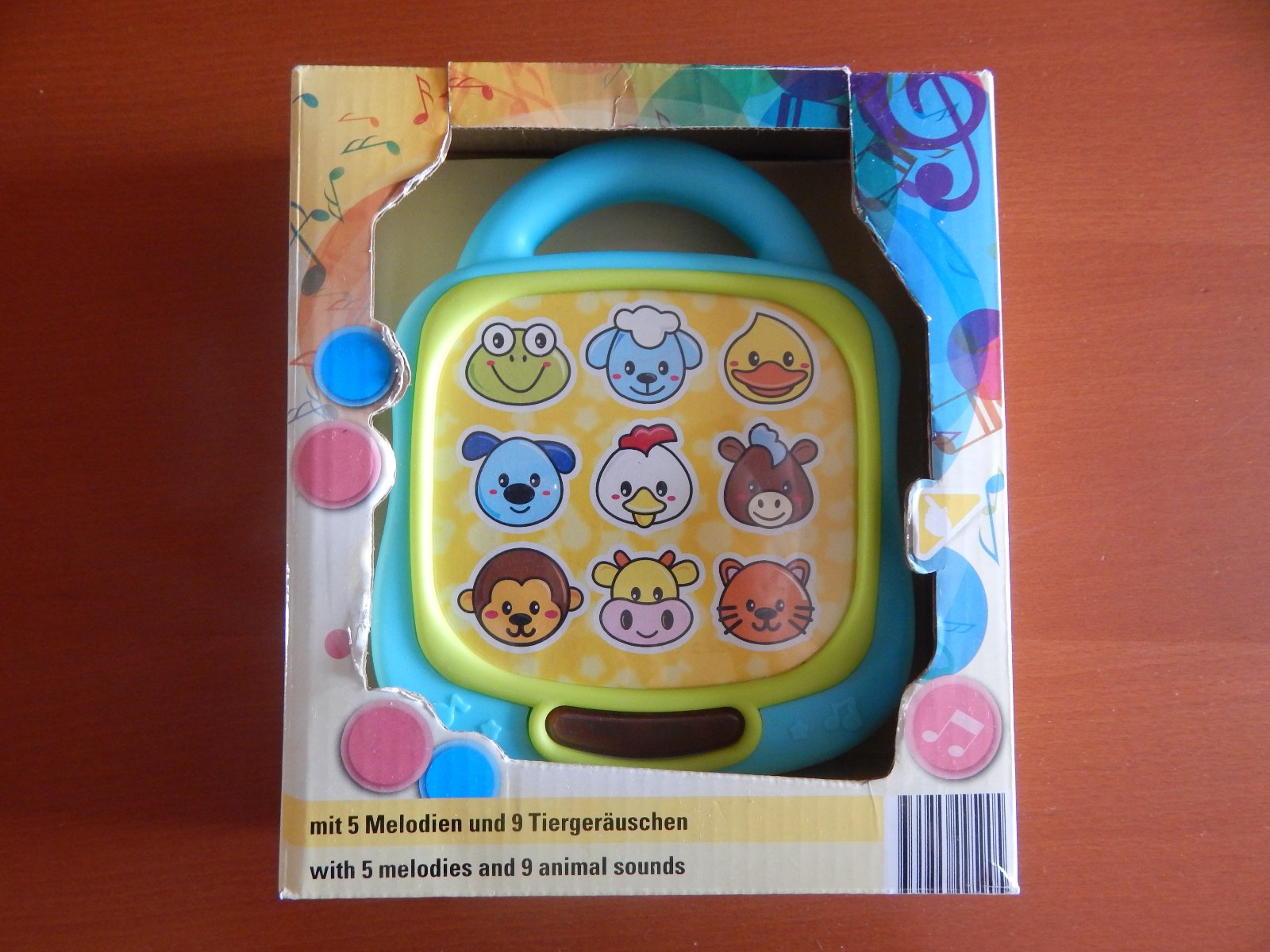 Predám používaný hudobný kufrík. Vhodný od 6 mesiacov. S 5 melódiami a 9 zvieracími zvukmi.