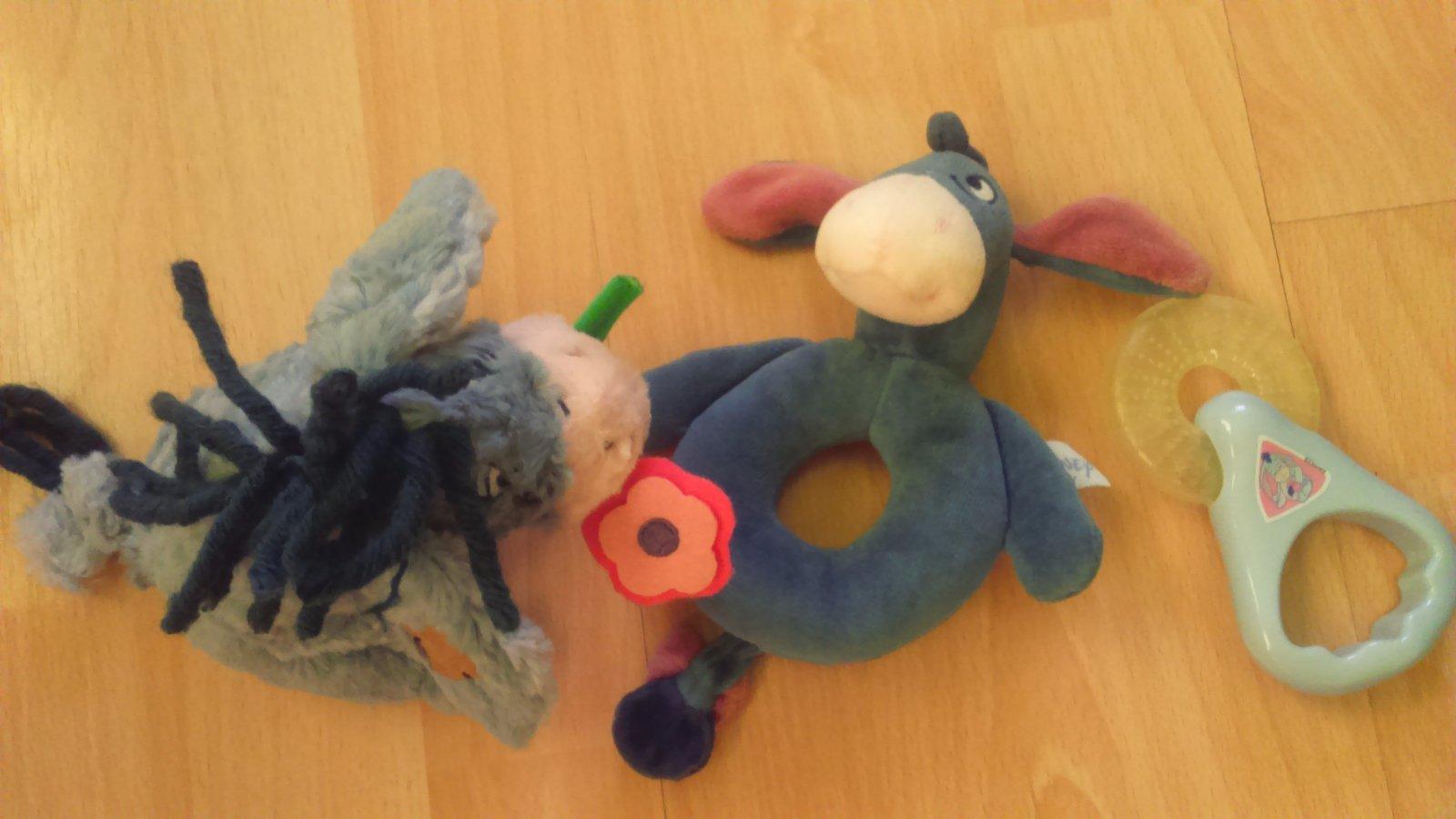 Plyšový, hrkálka a zdarma doližím chladiace hryzátko, všetko super stav.
