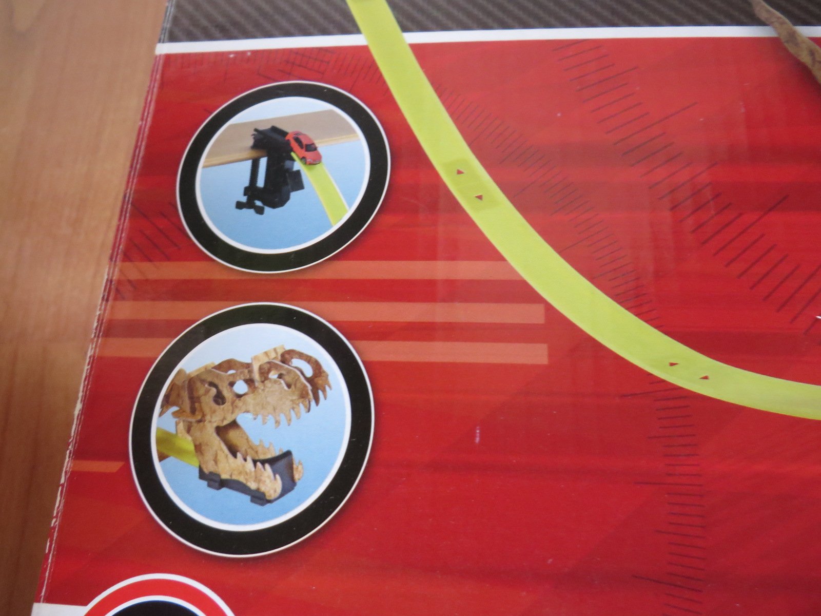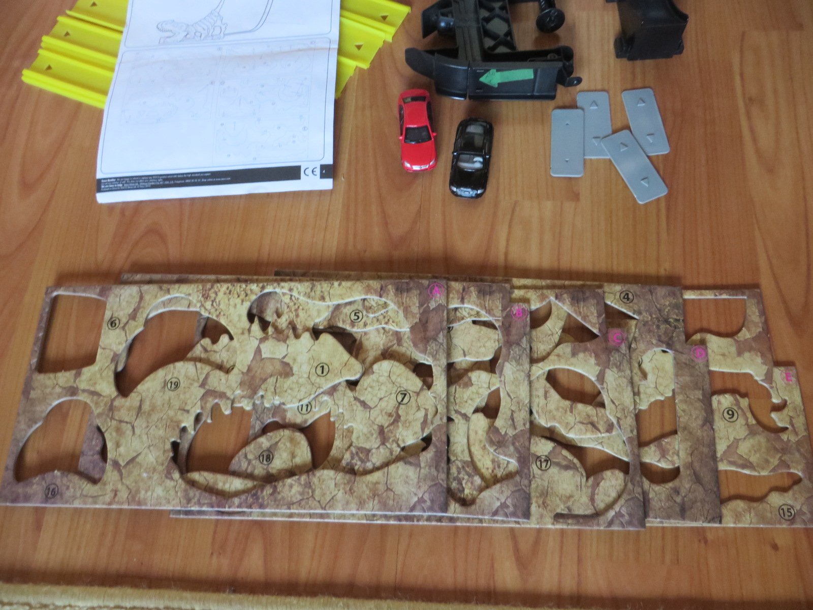 Predám super zábavnú dráhu pre autá. Niečo ako HOTWHEELS. Najlepšie je to vidieť na krabici. Všetko je kompletné, žlté dieliky dráhy sú mäkký plast, takže sú ohybné a poddajné. Aúto vyletí z papule dinosaura. Dino sa postaví s kartónových častí, všetko je v originál podkladoch. Prikladám ešte jedno čierne autíčko navyše, tak sko sme my súťažili.