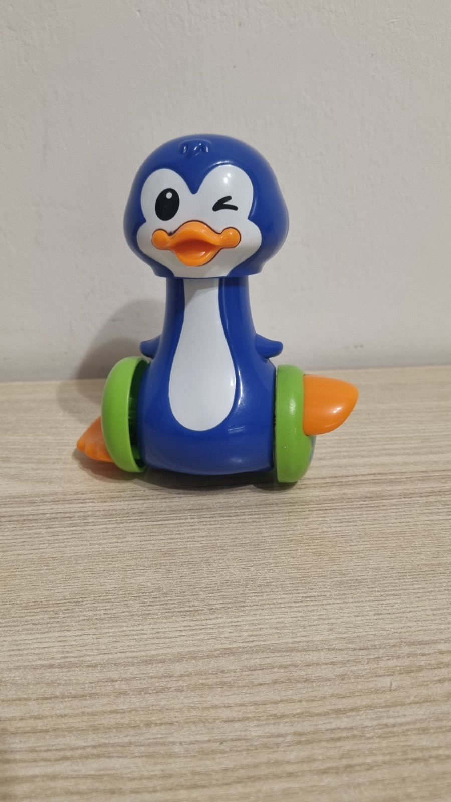 Naťahovací tučniak Playgo. Mechanizmus na natiahnutie je jednoduchý, stačí zatlačiť hlavu smerom nadol a po uvoľnení sa tučniak pohne. Výška 13cm, uvedený vek 12m+. Pri kúpe viacerých veci z môjho bazarika (3ks a viac) rada poskytnem zľavu.