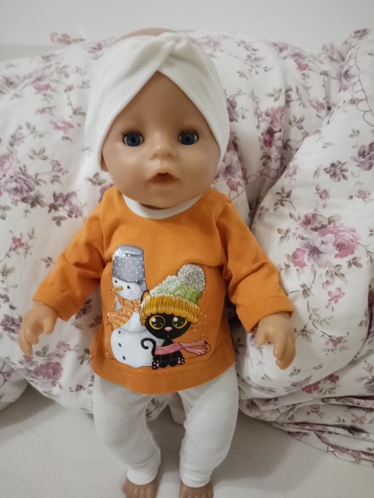 oblečenie je šité, nehrané. Vhodné pre bábiku baby born 43 cm a staršiu sestričku 43cm