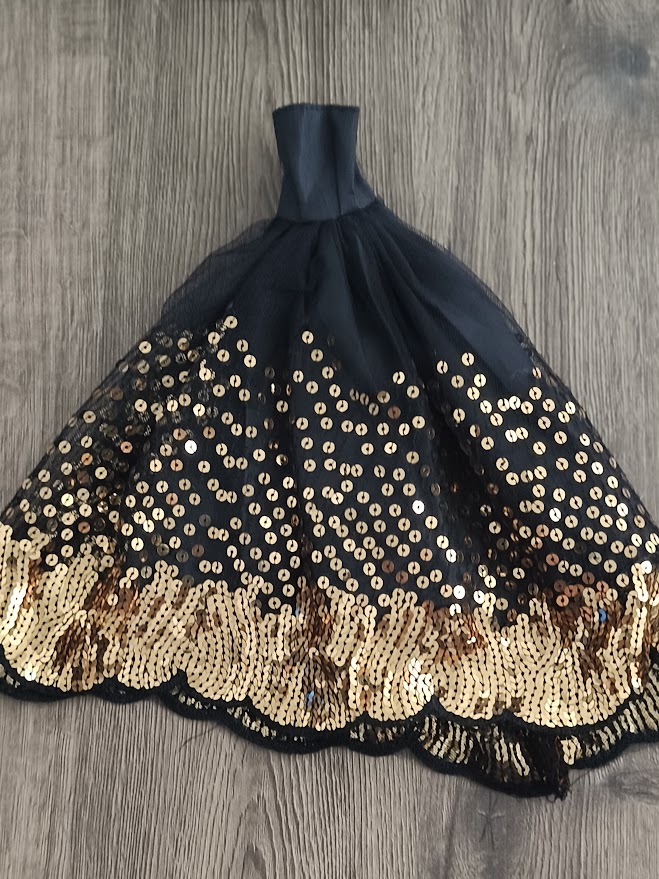 Predam krasne cierno-zlate vecerne saty pre barbie