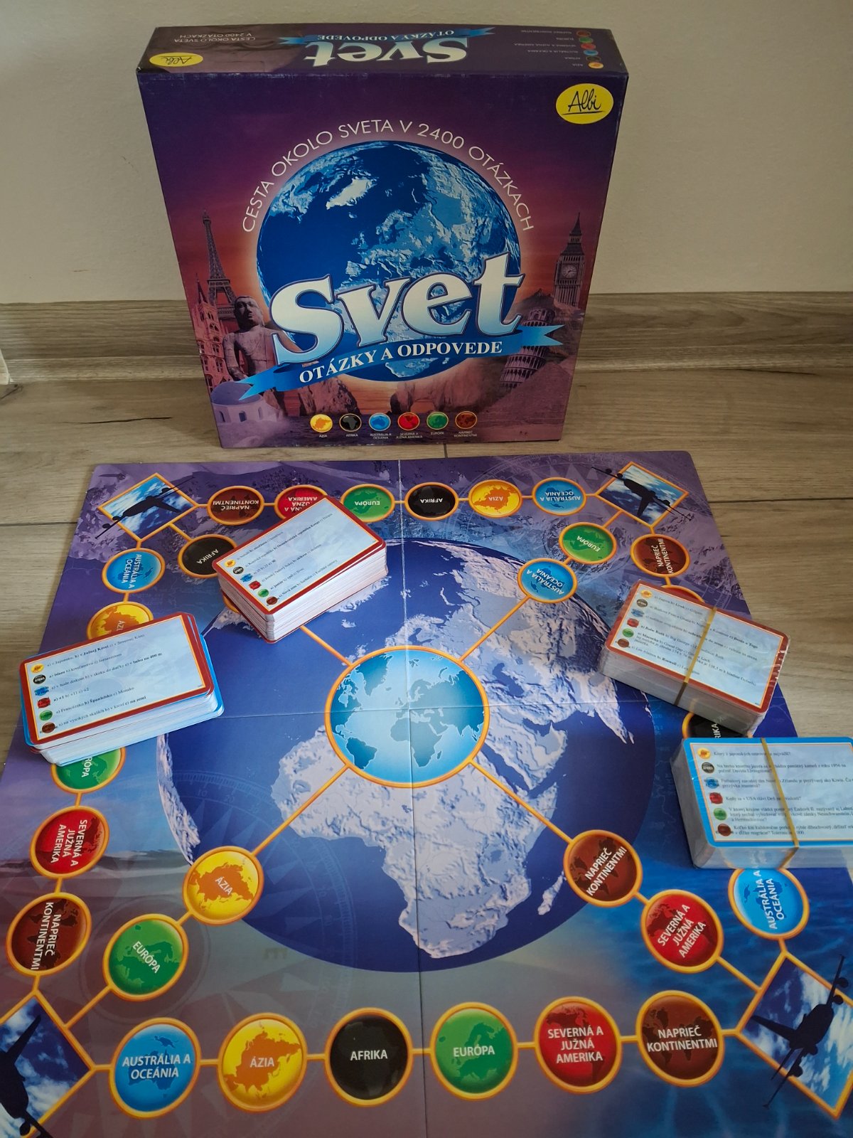 Ponúkam na predaj výbornú vedomostnú spoločenskú hru SVET - Cesta okolo sveta v 2400 otázkach.