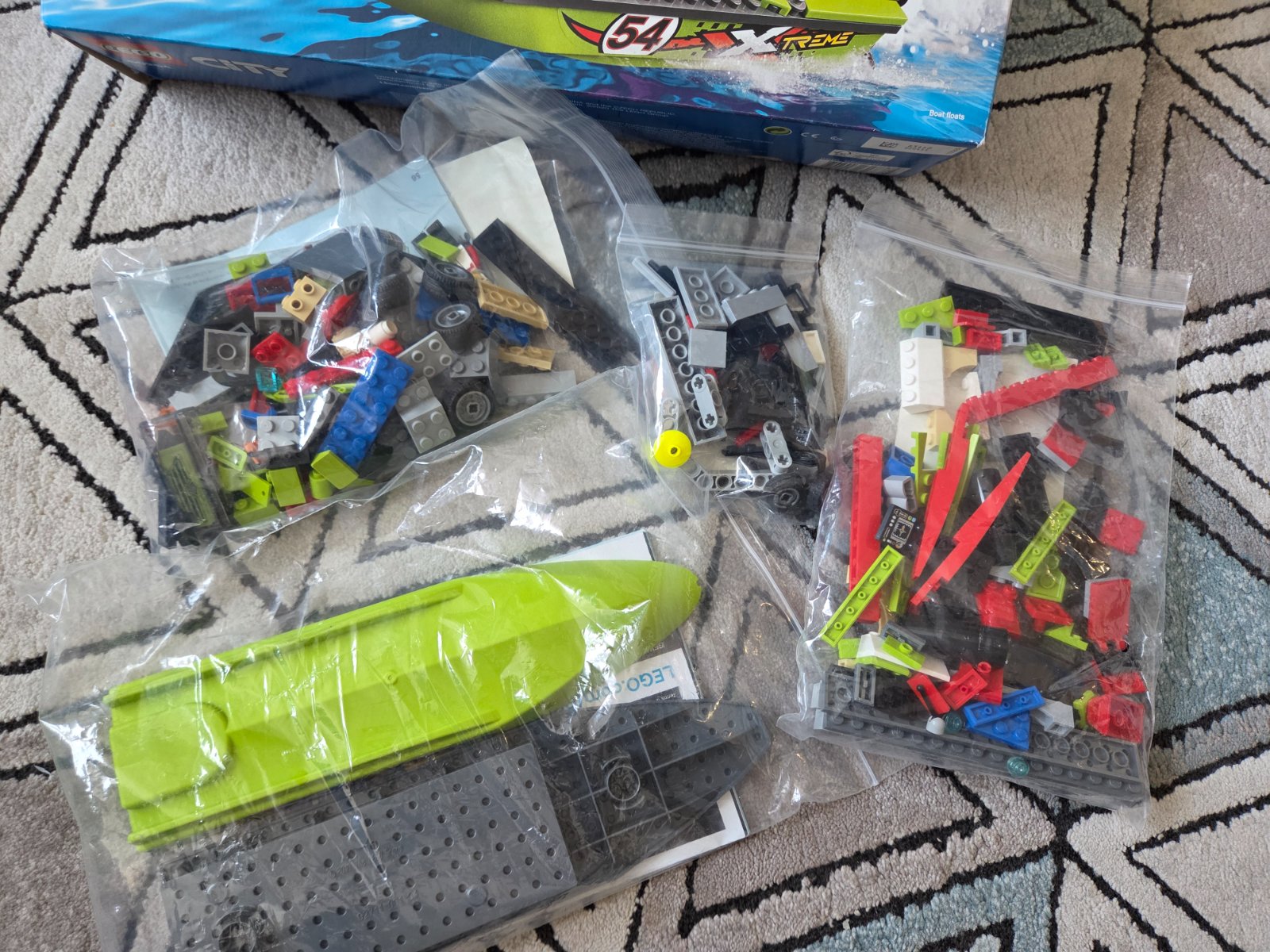 1x zložené, rozložené podľa návodu do sáčkov. Nič nechýba. V krabičke.
