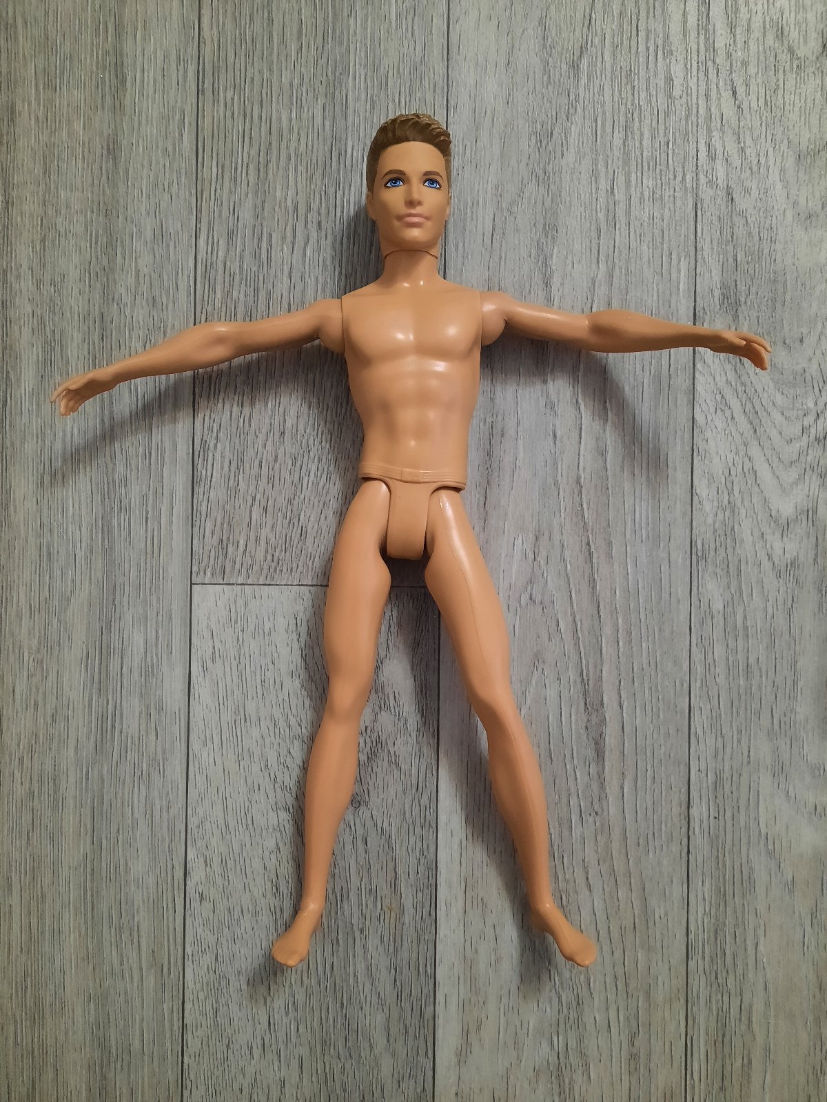 Barbie ken chlapec. Mierne vie zakloniť hlavu dozadu. Má plastové telo.