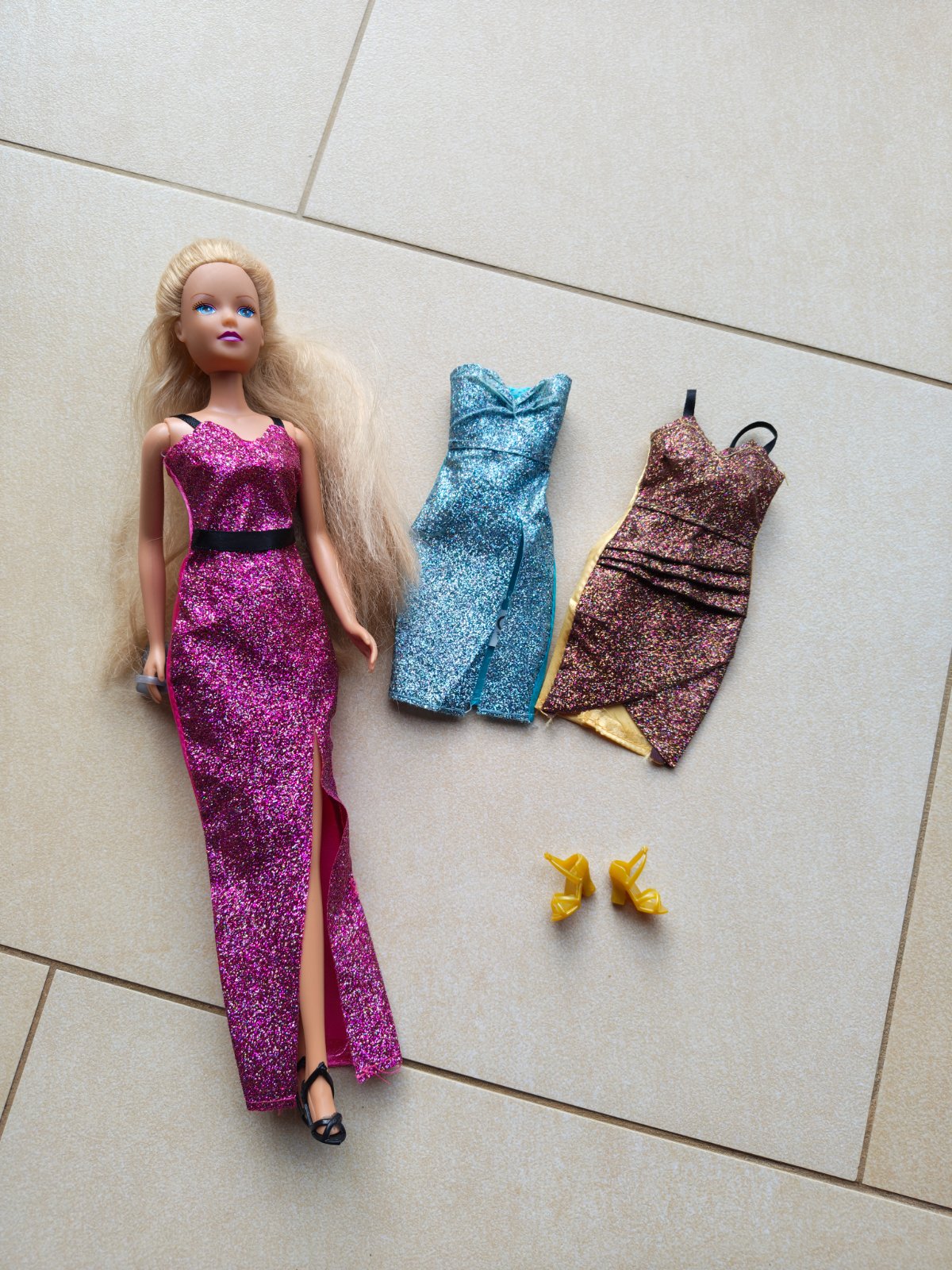 Predám bábiku Simba Toys s náhradnými šatami a topánkami. Bábika aj šaty sú hrané a bežne opotrebované.