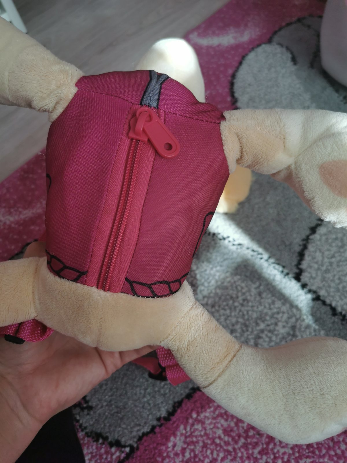 Plyšová Skye, ktorá má aj zips zo spodnej časti na schovanie niečoho maličkého a popruhy ako na batoh.V