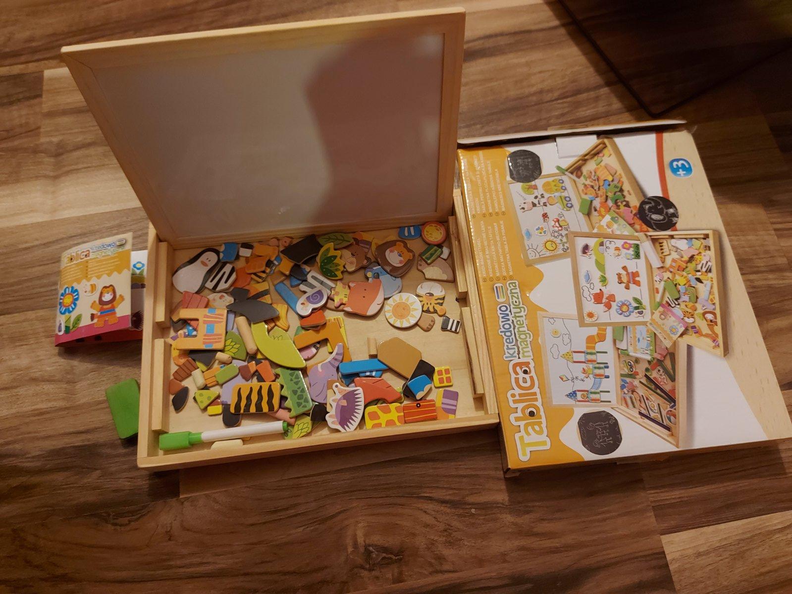 Predám magnetickú tabuľku. Z druhej strany kriedova. Fixka nepíše a niektoré dieliky chýbajú.