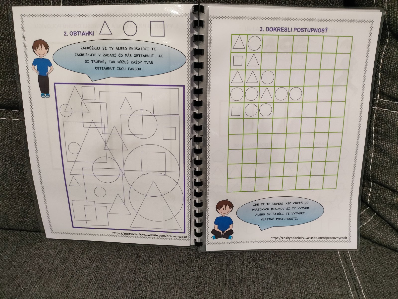 Na prvej strane je meno dieťaťa a viete si vybrať či v zošite bude postavička chlapca alebo dievčaťa.