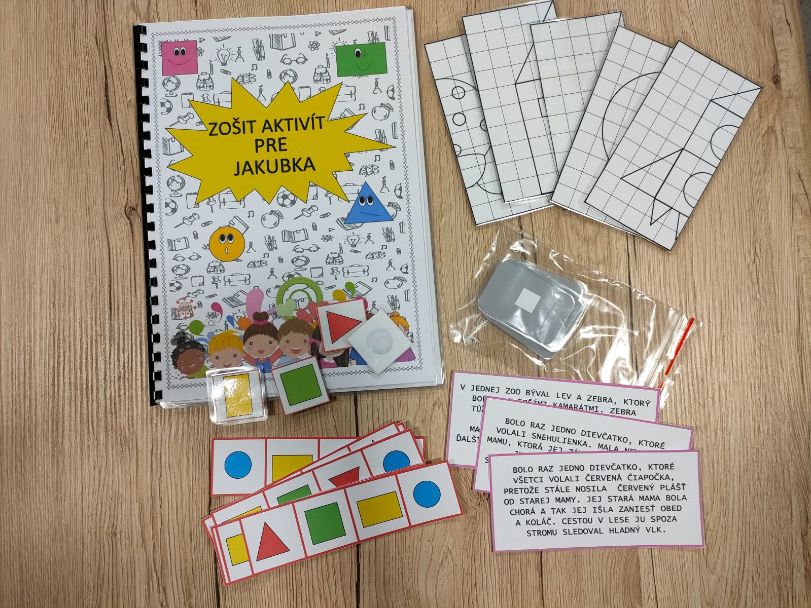 * príbehy a predlohy na pamäť tlačené na hrubý papier ako výkres