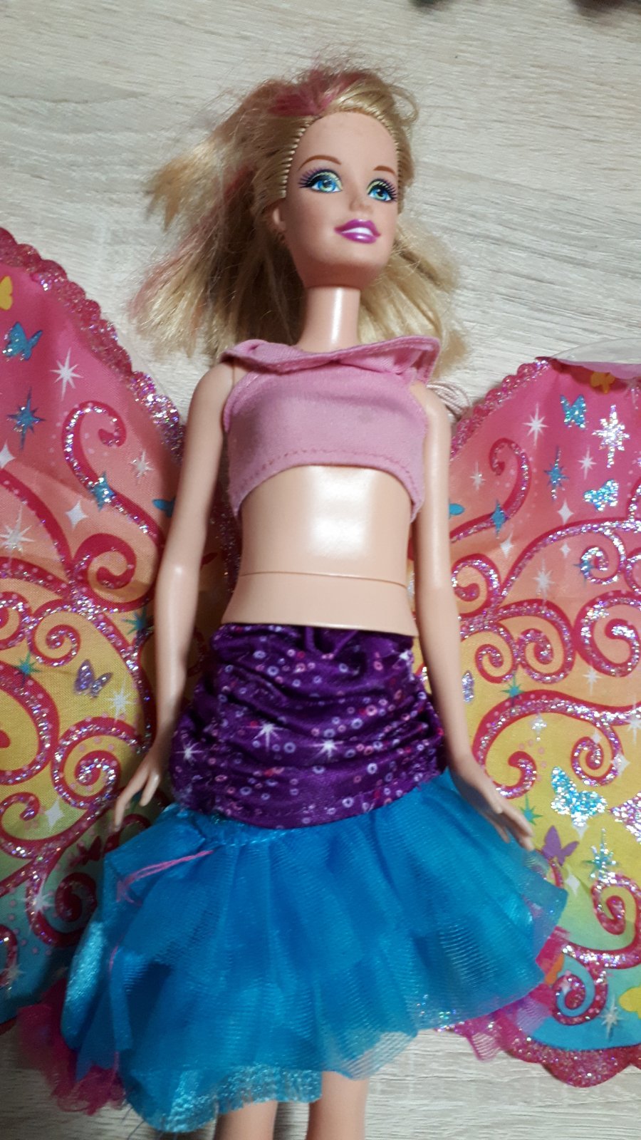Krásna Barbie, sťahovacia sukňa, sukňa, mávajúce krídla, top, čižmy.